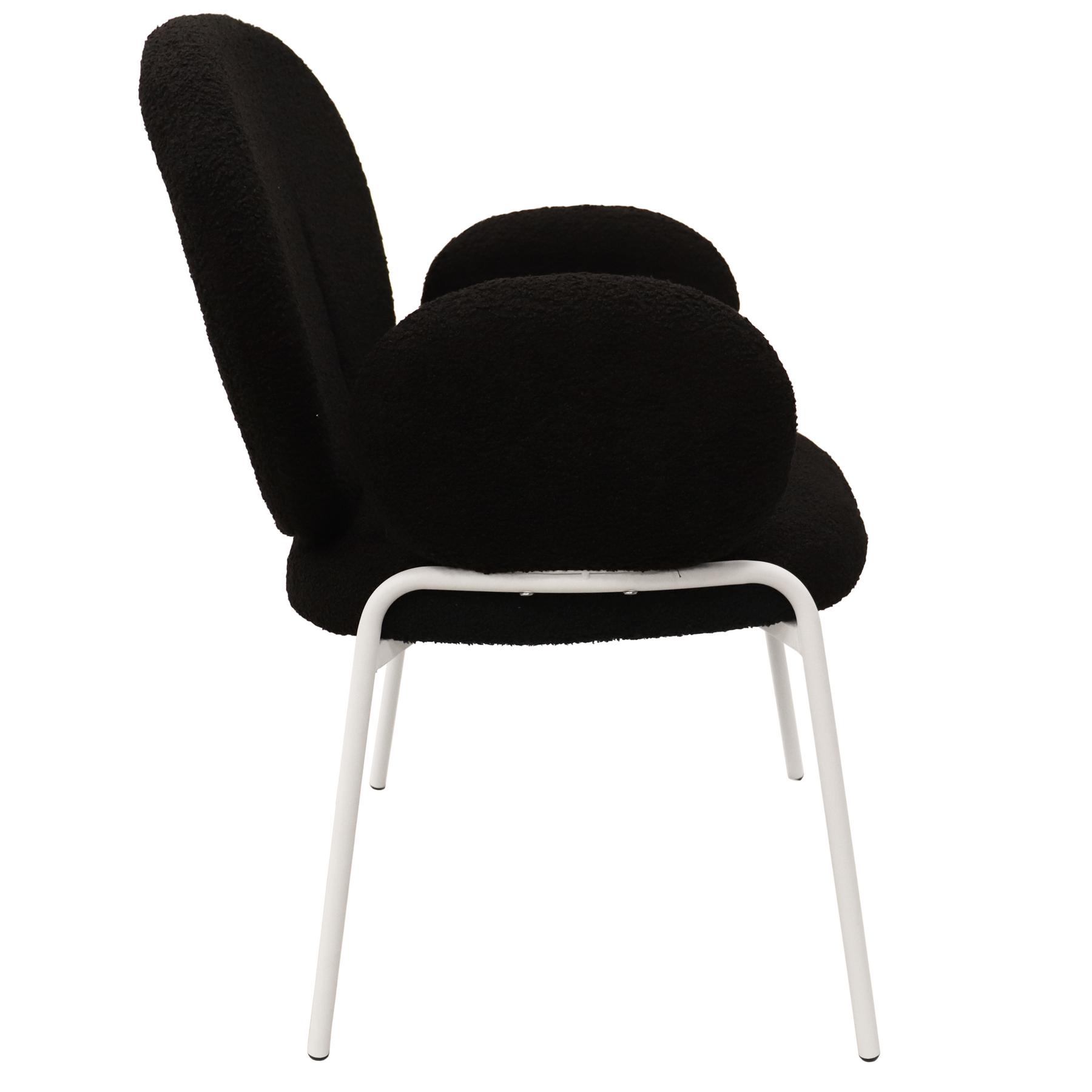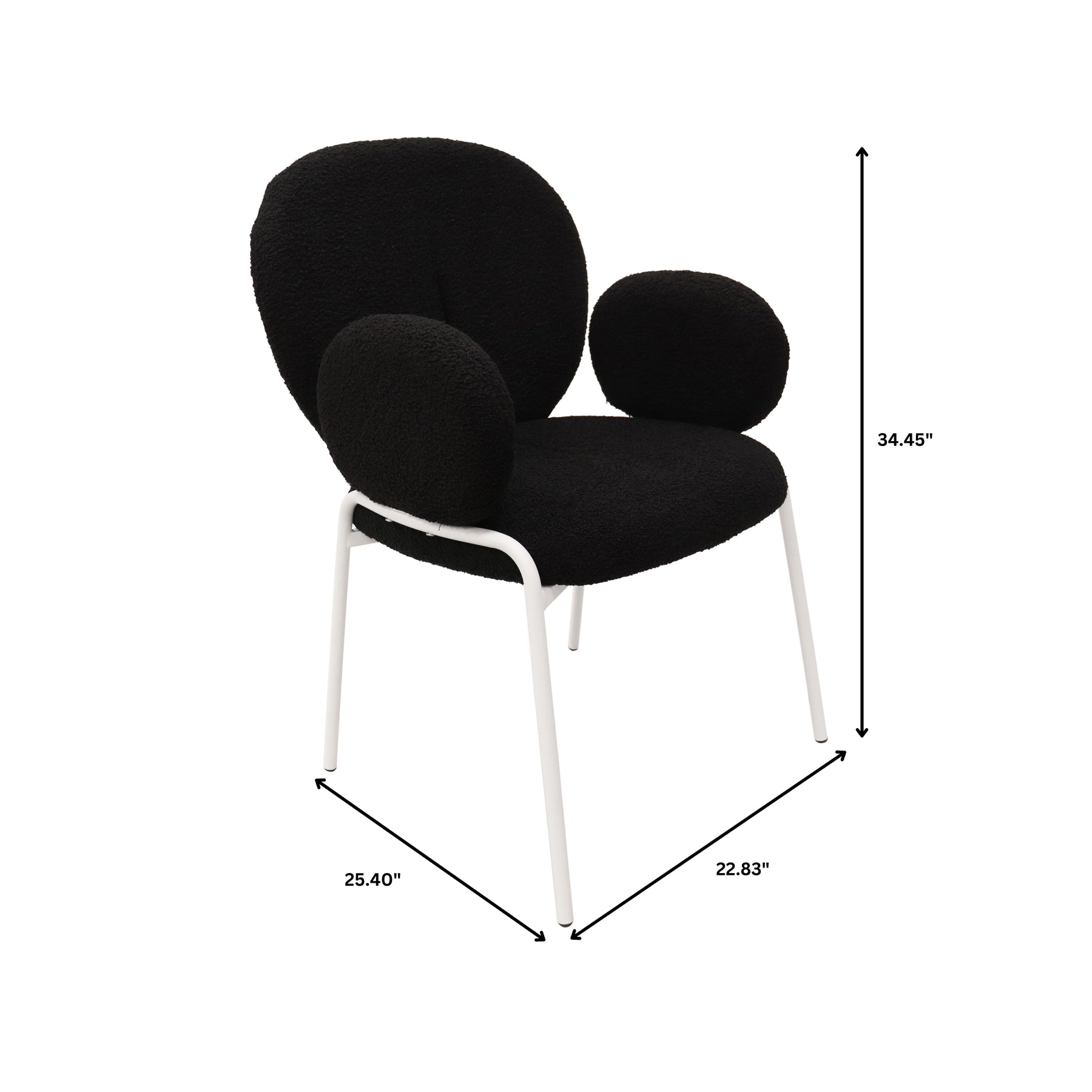 Celestial Series Boucle Dining Arm Chair, White Frame with Black Fabric