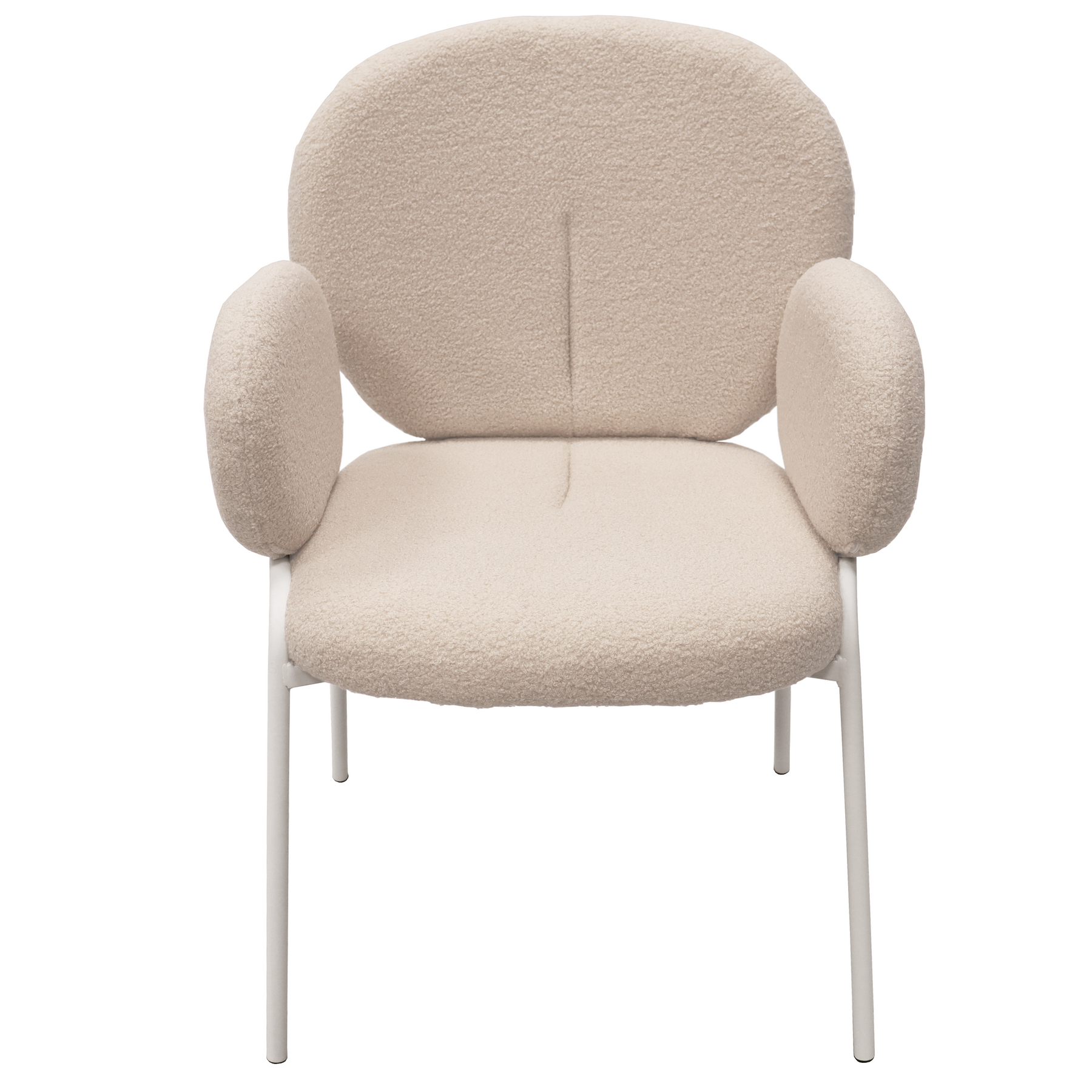 Celestial Series Boucle Dining Arm Chair, White Frame with White Fabric