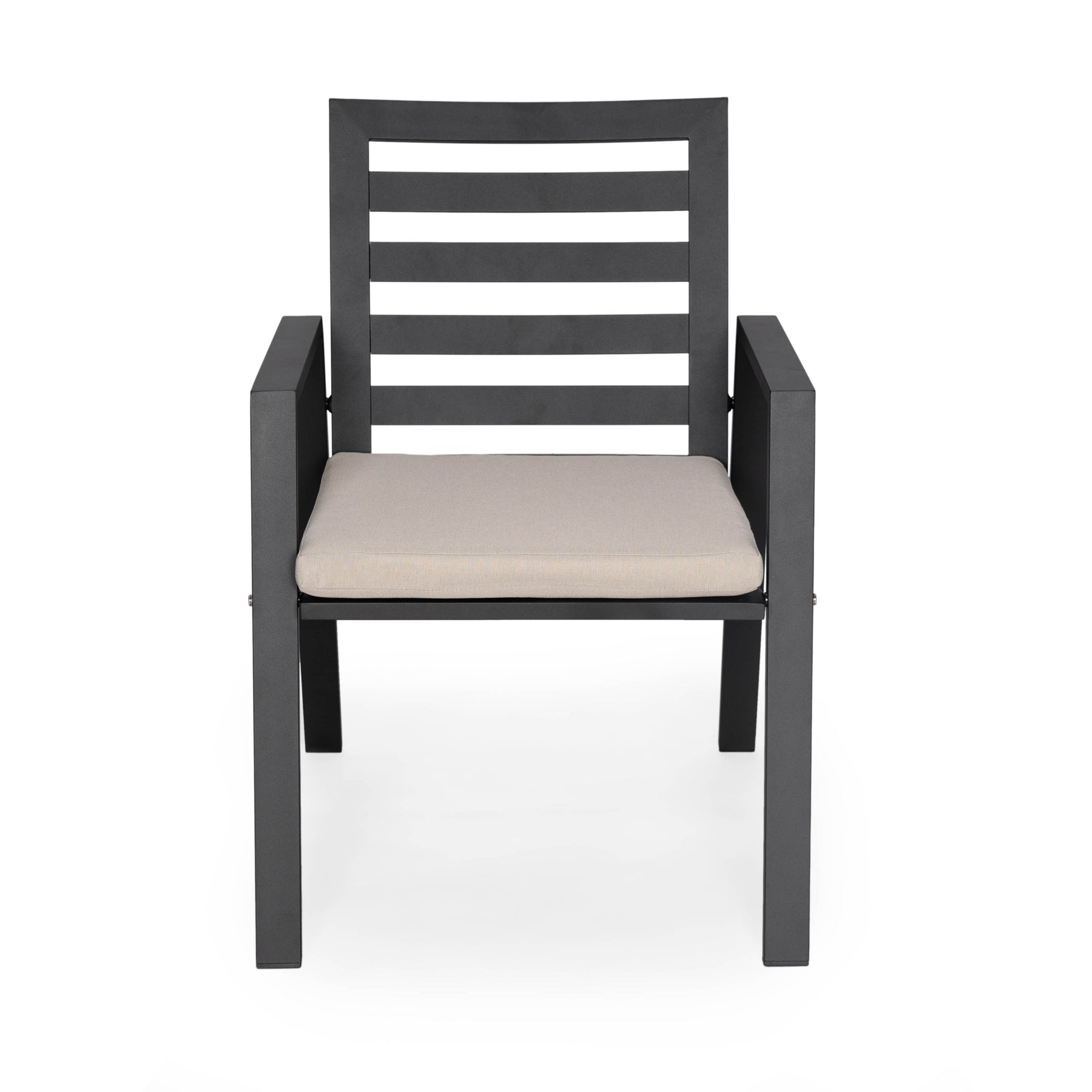 • This modern patio dining armchair is made with an aluminum frame, providing exceptional strength and stability, ensuring that it remains in pristine condition for years to come.