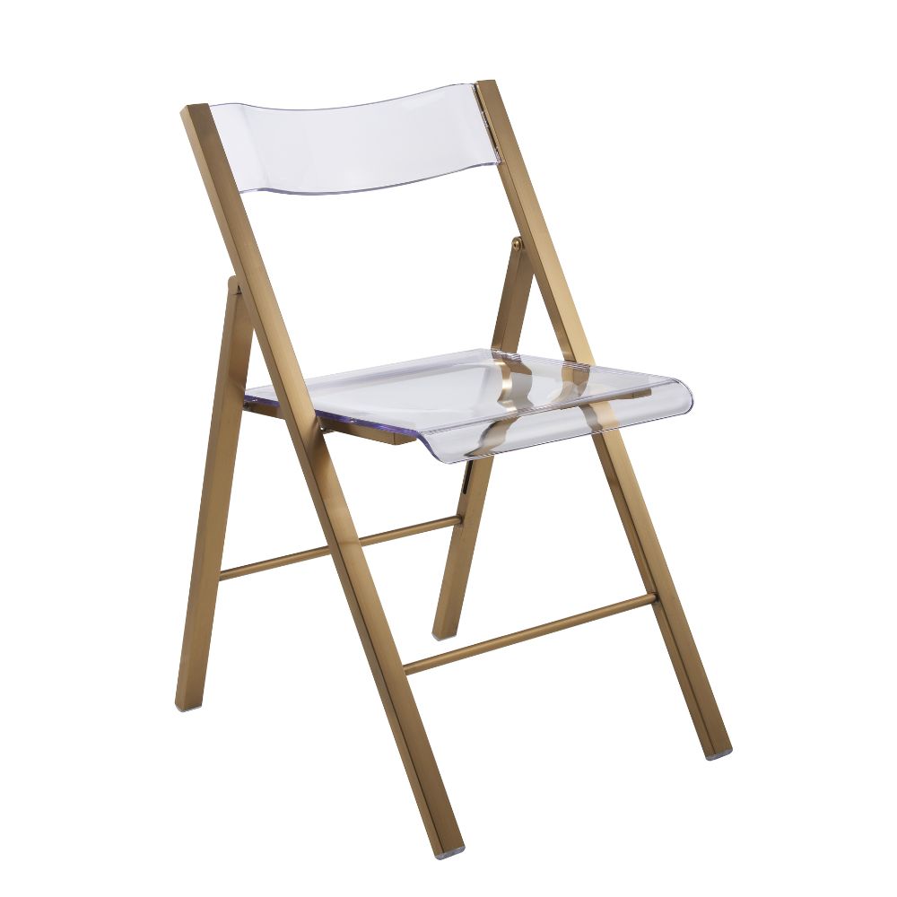Menno Mid-Century Modern Acrylic Folding Chair in Brushed Gold Finish with Stainless Steel Frame for Kitchen and Dining Room Set of 4