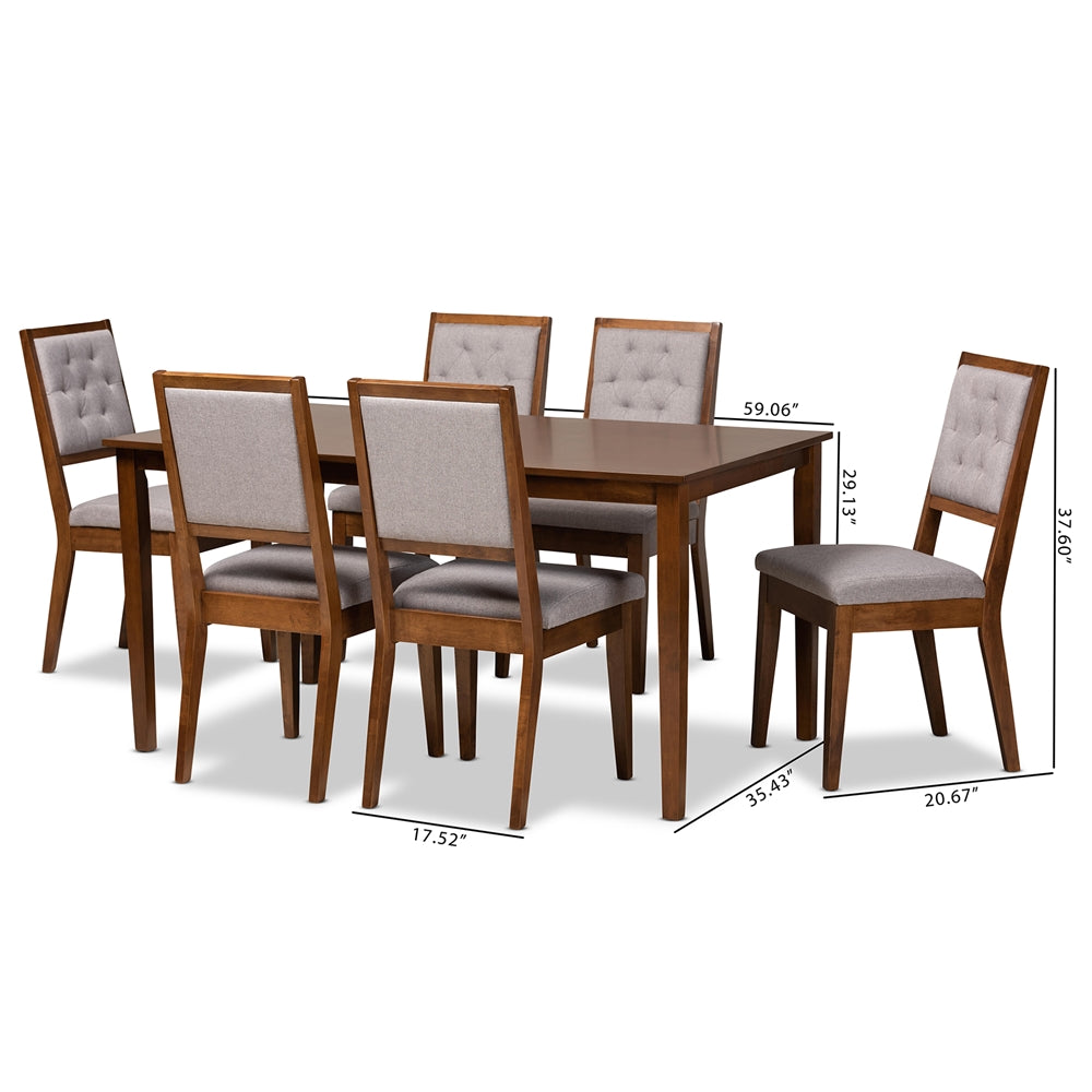 Skyline Decor Suvi Modern and Contemporary Grey Fabric Upholstered and Walnut Brown Finished Wood 7-Piece Dining Set