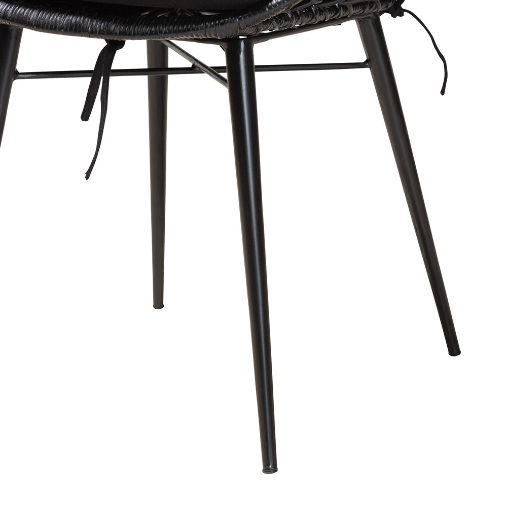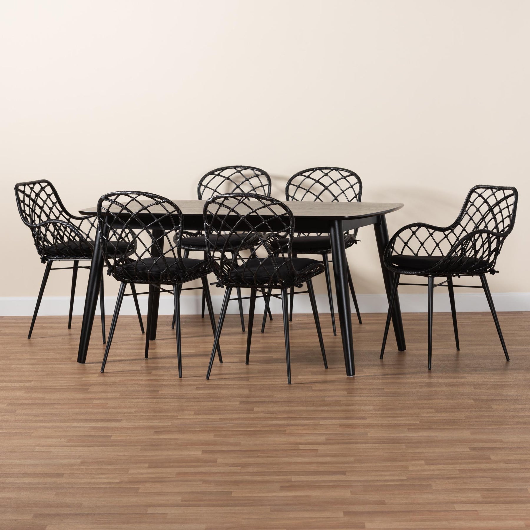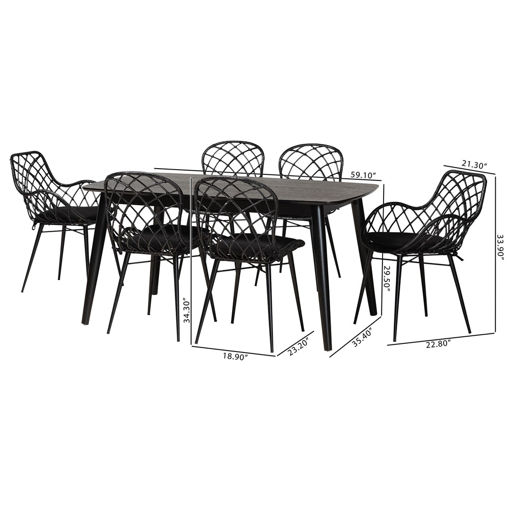 Aniceta Modern Bohemian Black Finished Wood And Rattan 7-piece Dining Set