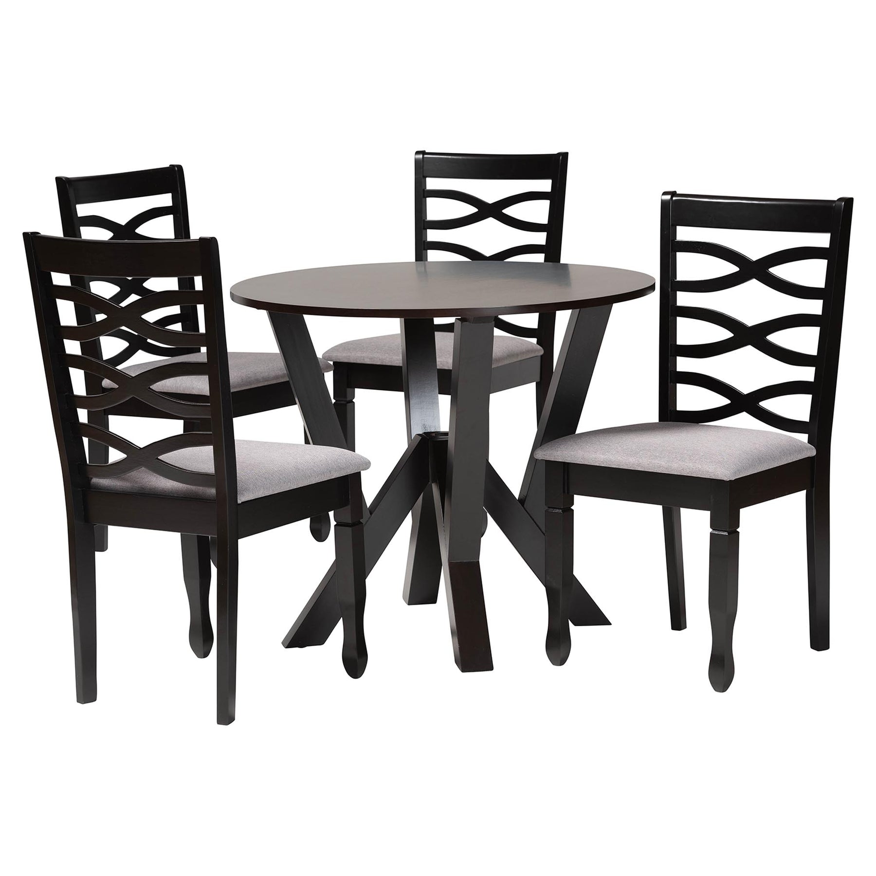 Ariane Modern Grey Fabric And Dark Brown Finished Wood 5-piece Dining Set