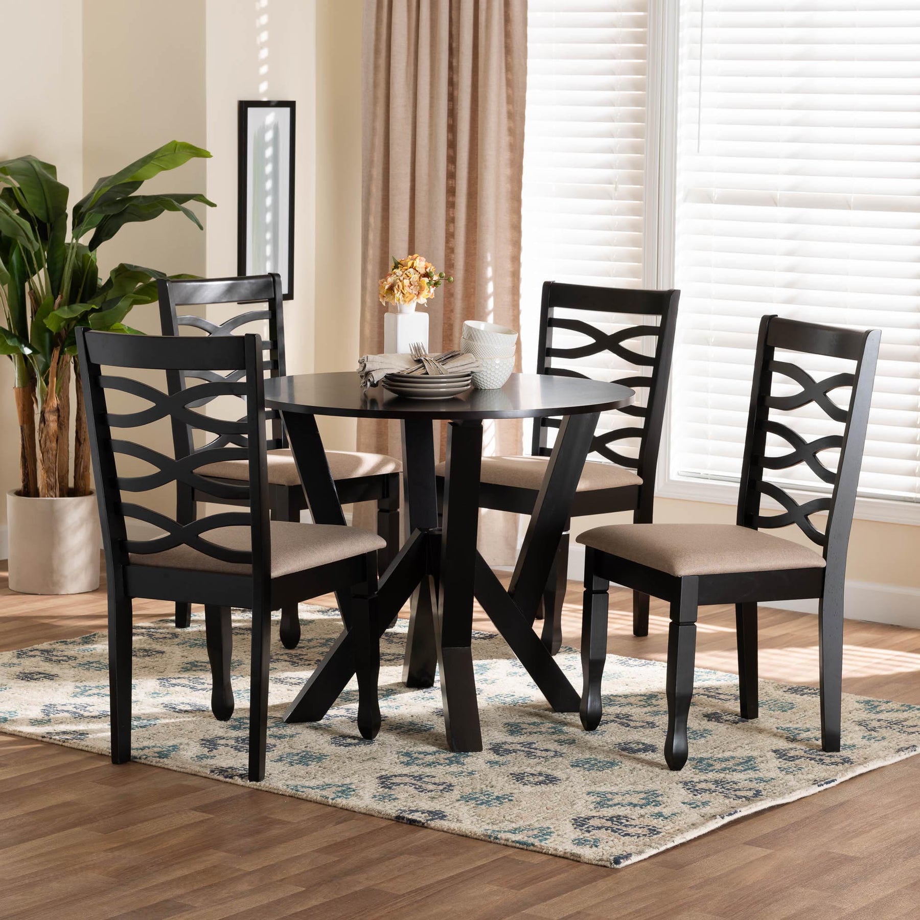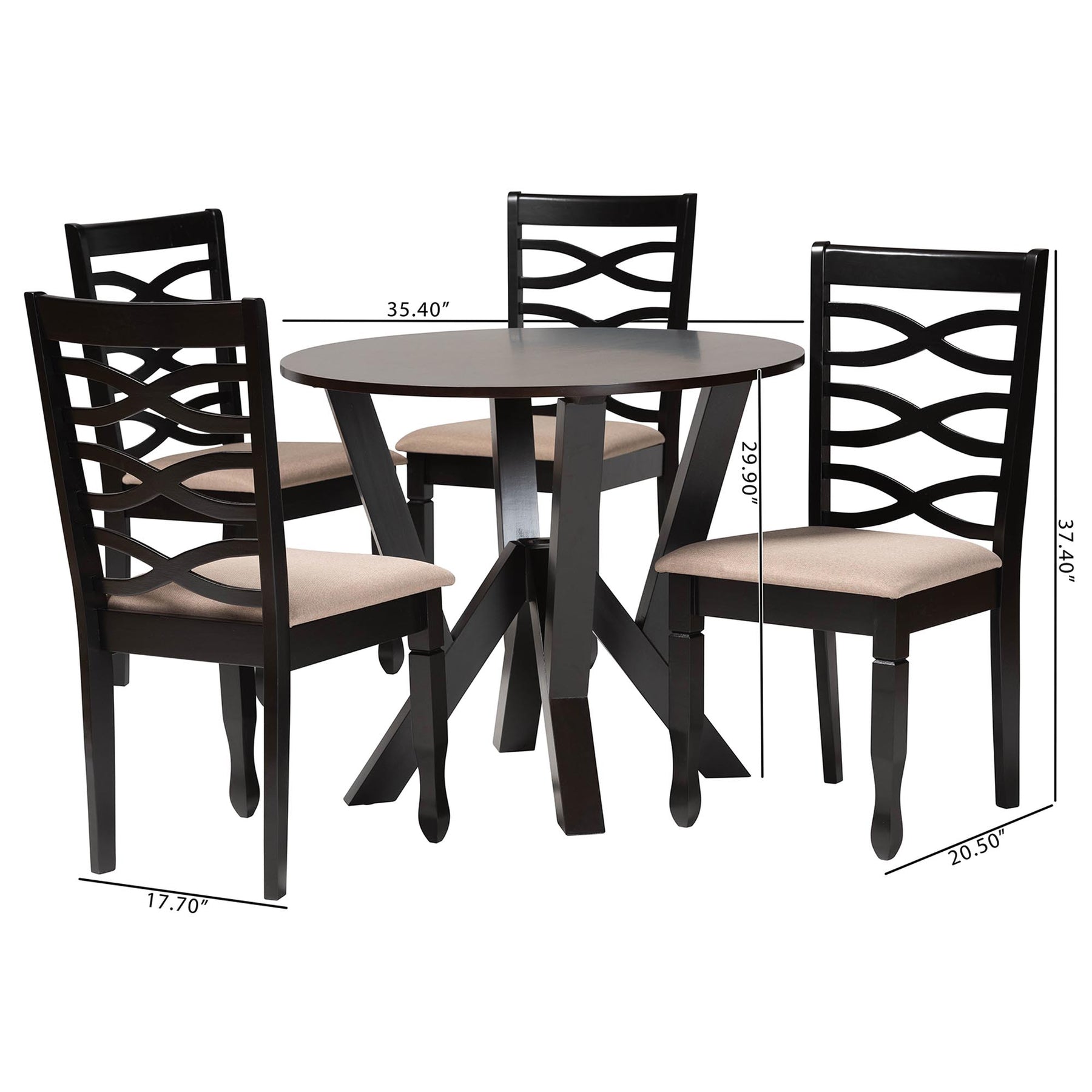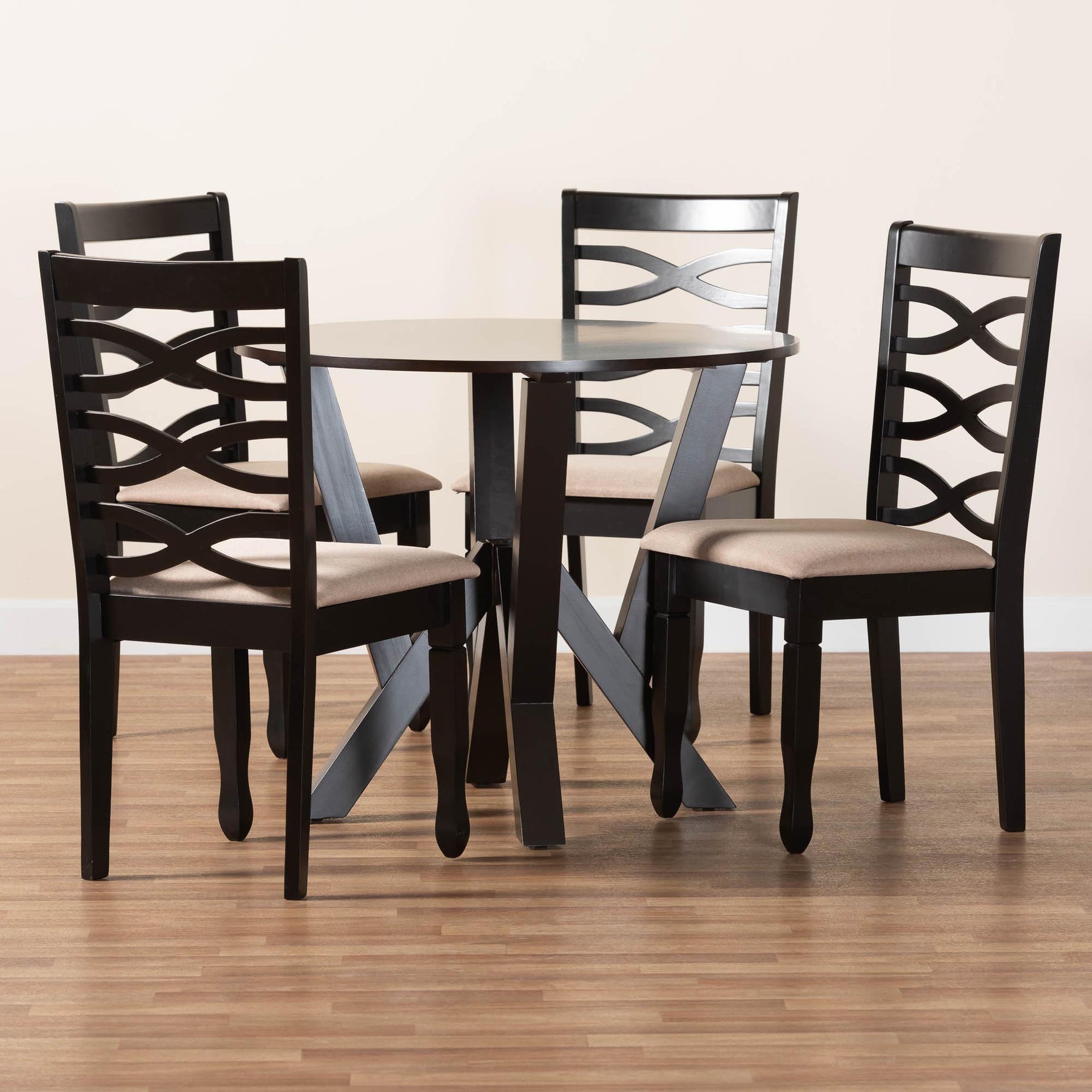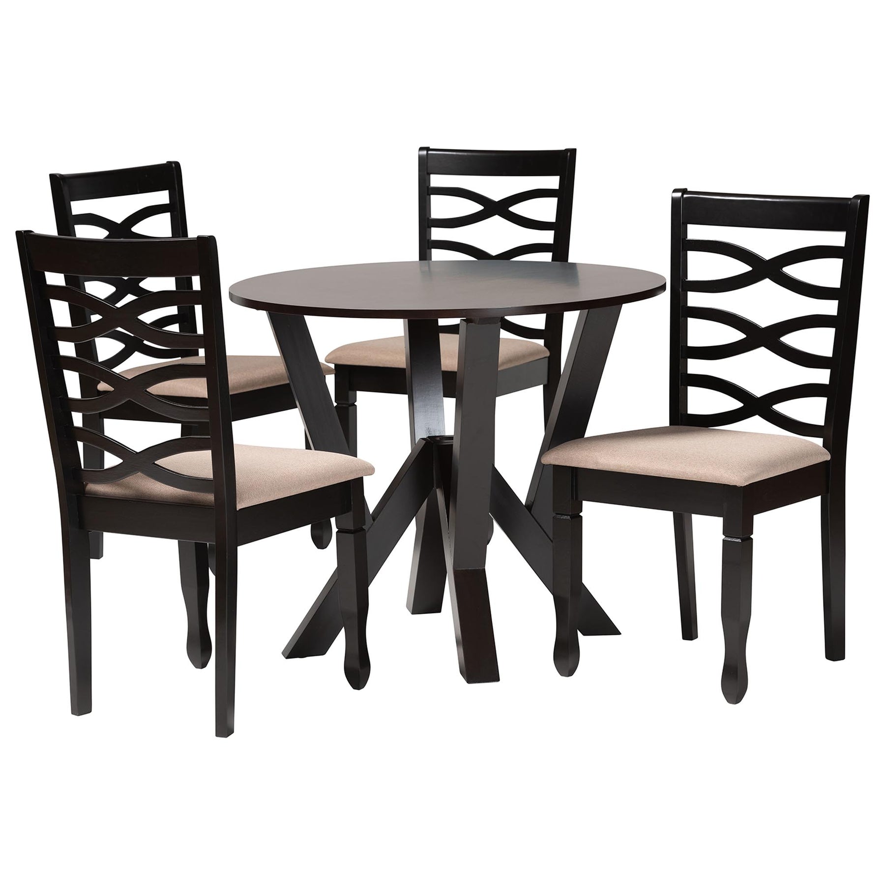 Ariane Modern Sand Fabric And Dark Brown Finished Wood 5-piece Dining Set