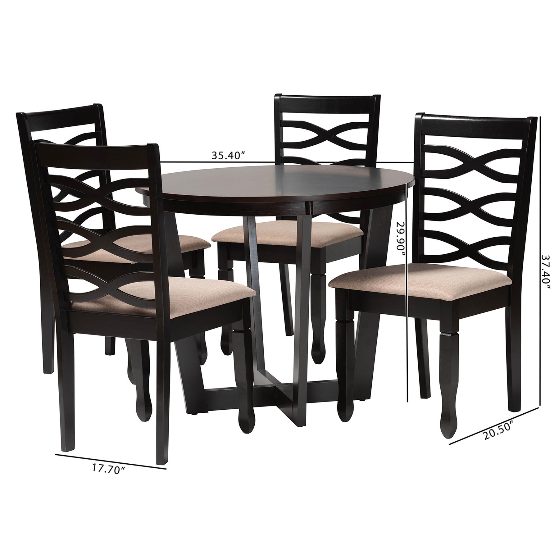 Leda Modern Sand Fabric And Dark Brown Finished Wood 5-piece Dining Set
