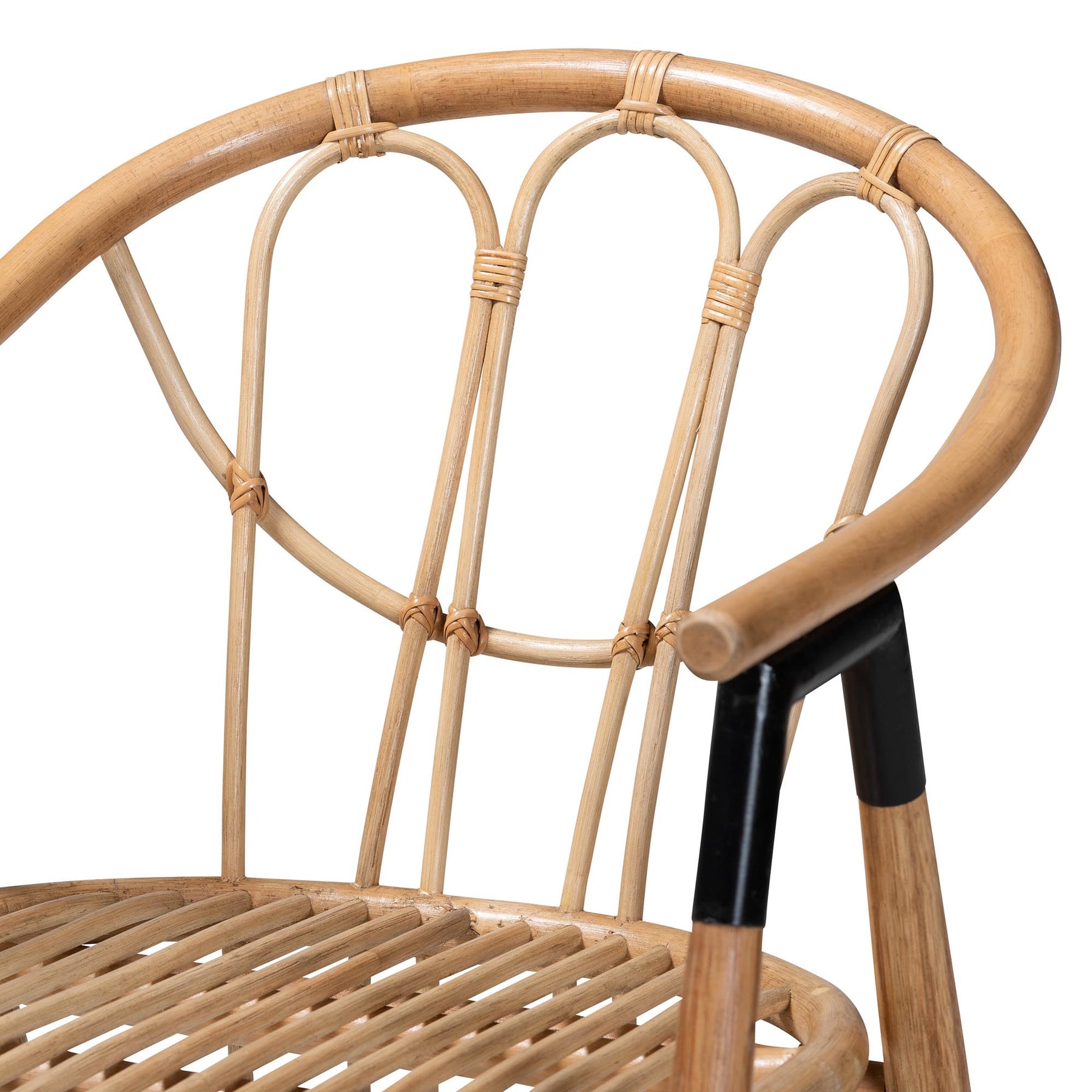 • Constructed from Rubber Wood, Engineered Wood, Natural Rattan, and Metal