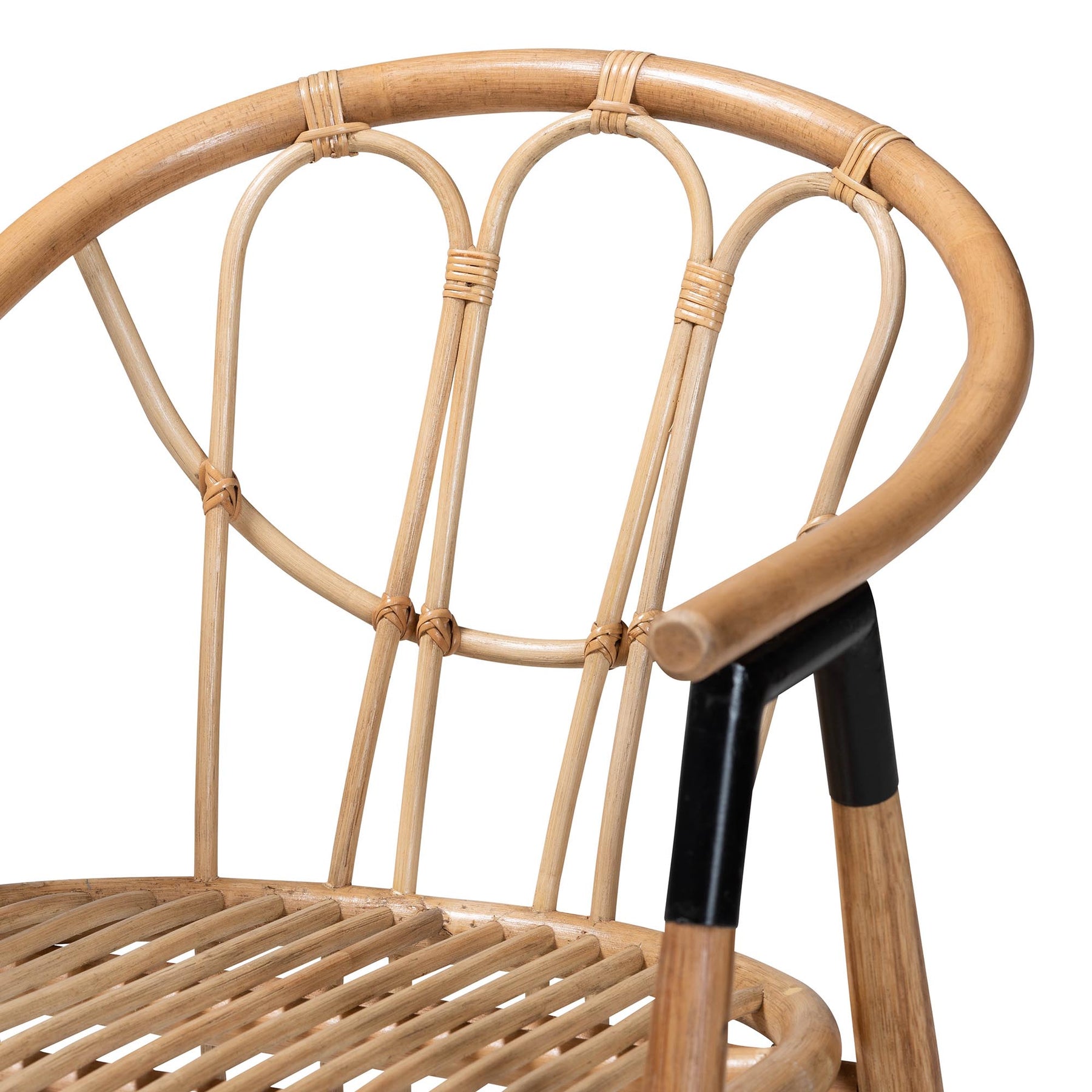 Cyntia Modern Bohemian Natural Brown Finished Wood And Rattan 5-piece Dining Set