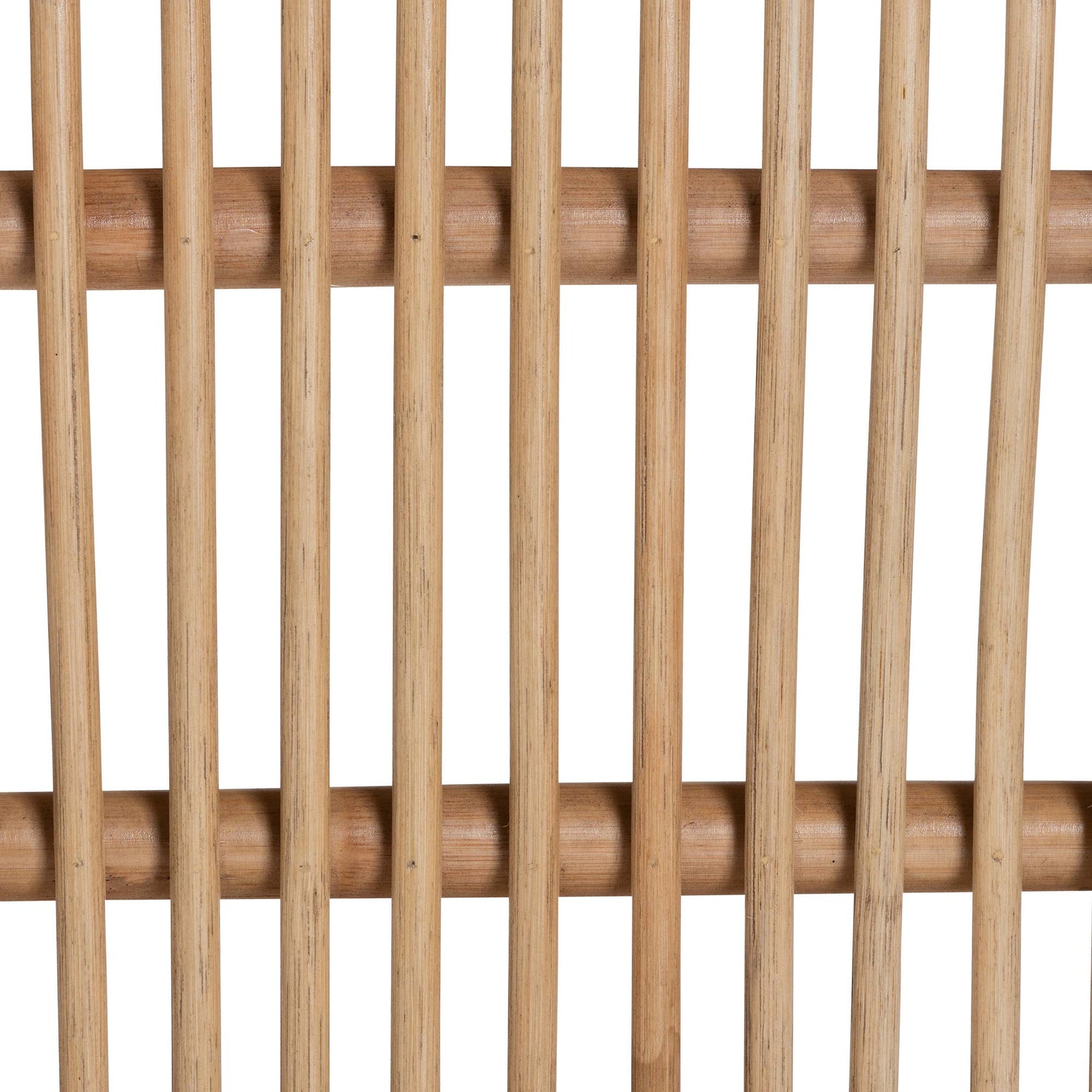 - Constructed from Rubber Wood, Engineered Wood, Natural Rattan, and Metal
