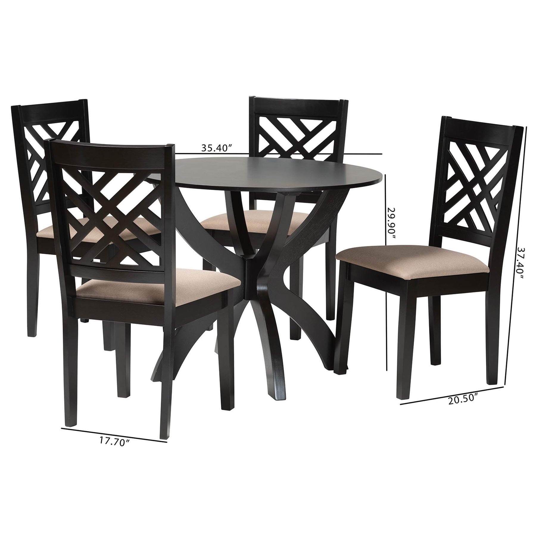 Edona Modern Sand Fabric And Walnut Brown Finished Wood 5-piece Dining Set