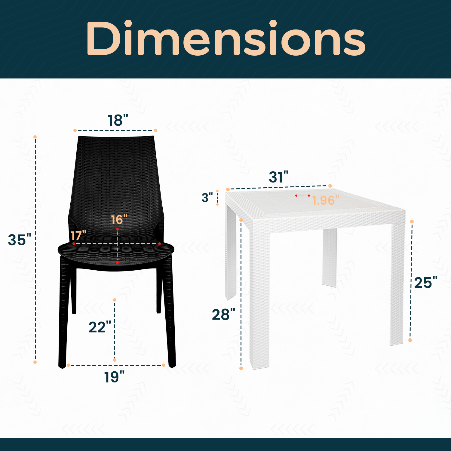 - The Outdoor Dining Set features an attractive interlaced pattern that adds a touch of elegance and sophistication to your outdoor space.