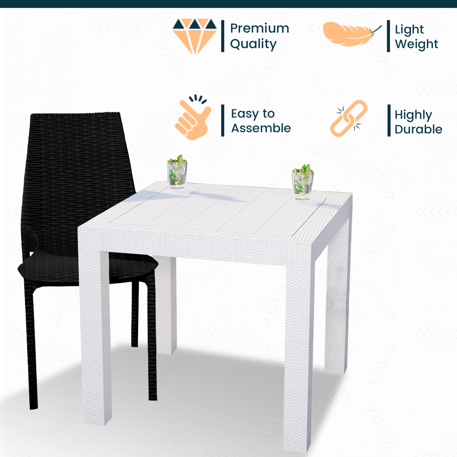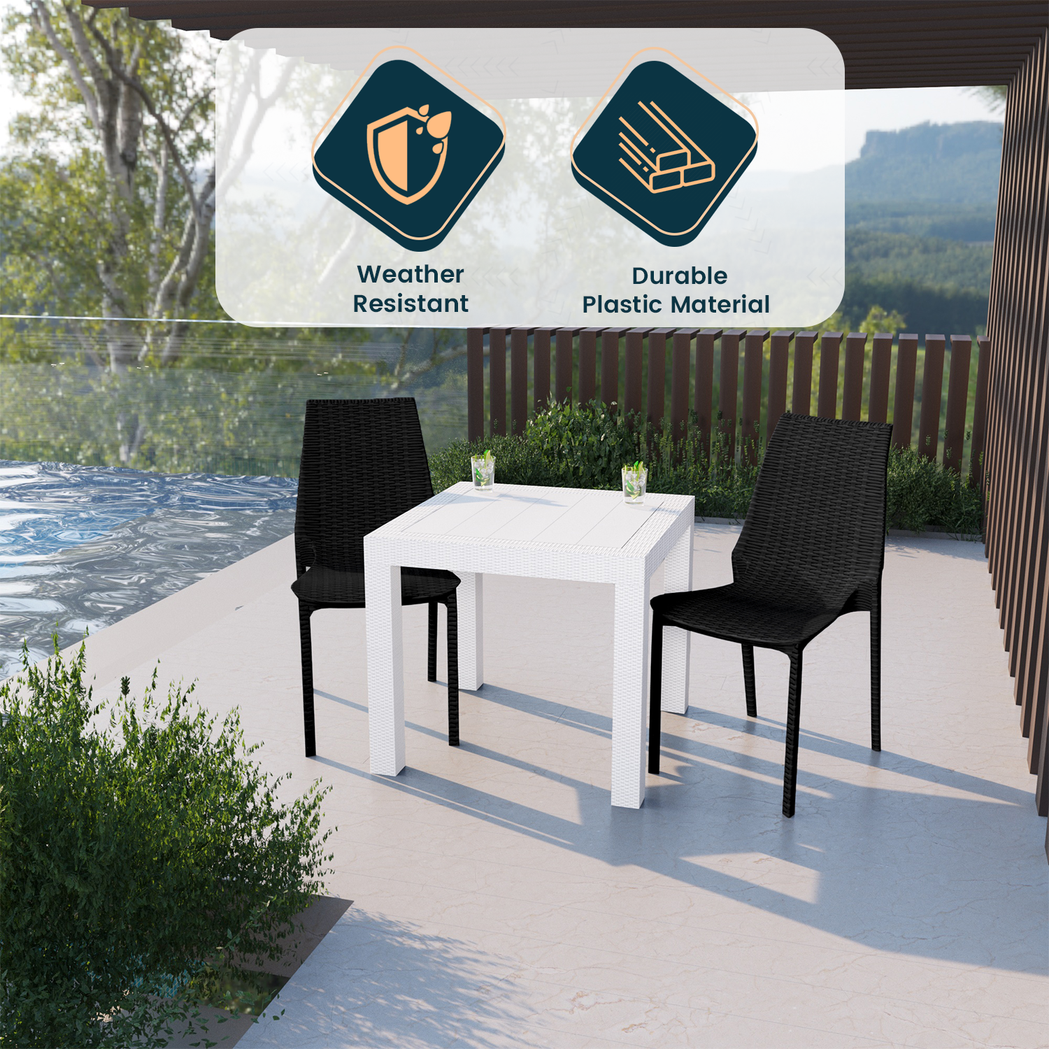 - This outdoor dining set is made from polypropylene material, which is known for its durability and resistance to wear and tear, making it suitable for daily use.