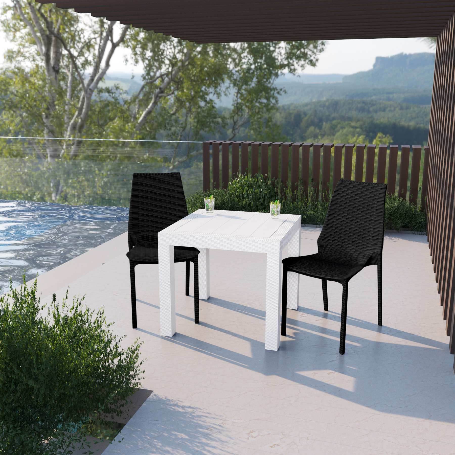 Kent Outdoor White Table With 2 Black Chairs Dining Set