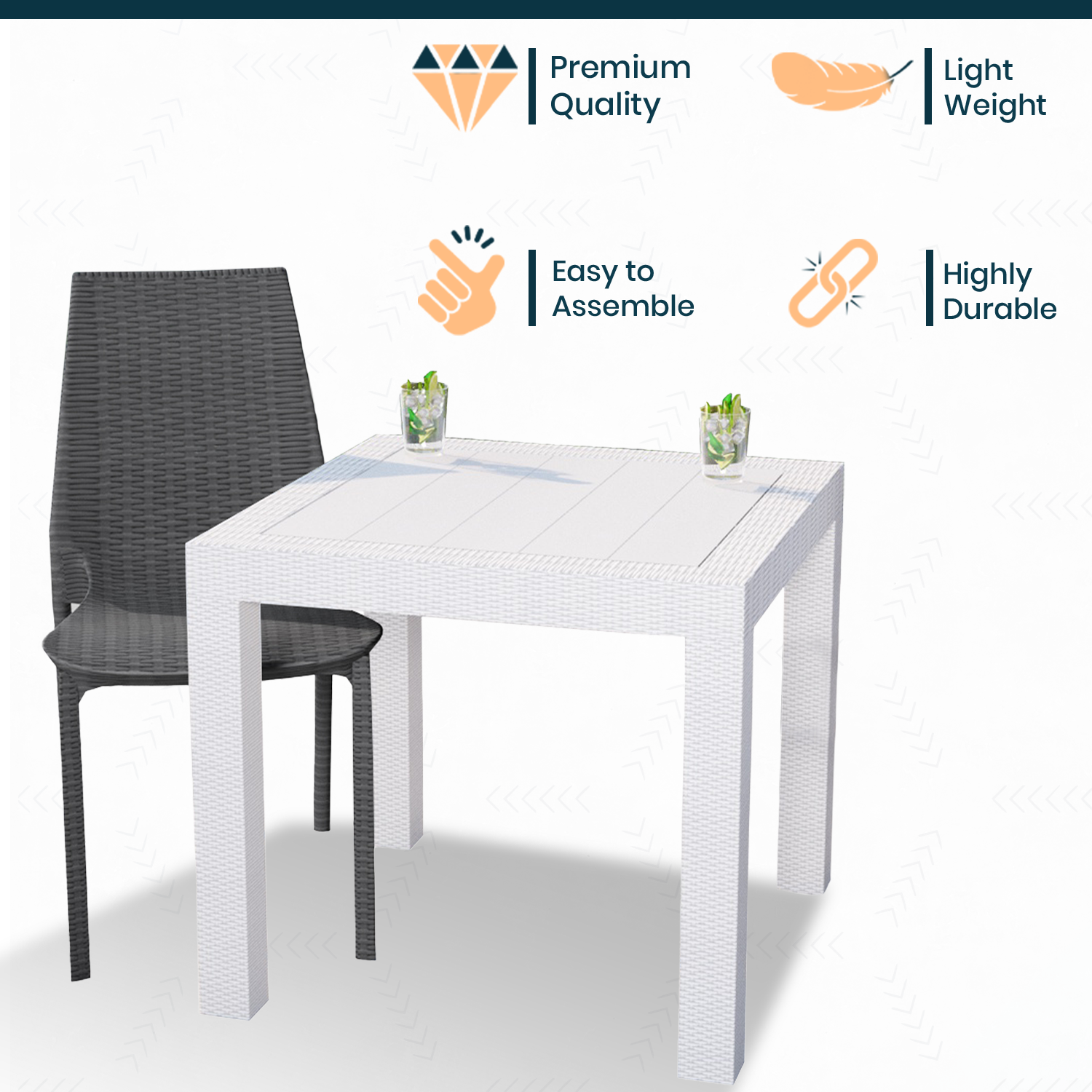 - The Outdoor Dining Set features an attractive interlaced pattern that adds a touch of elegance and sophistication to your outdoor space.