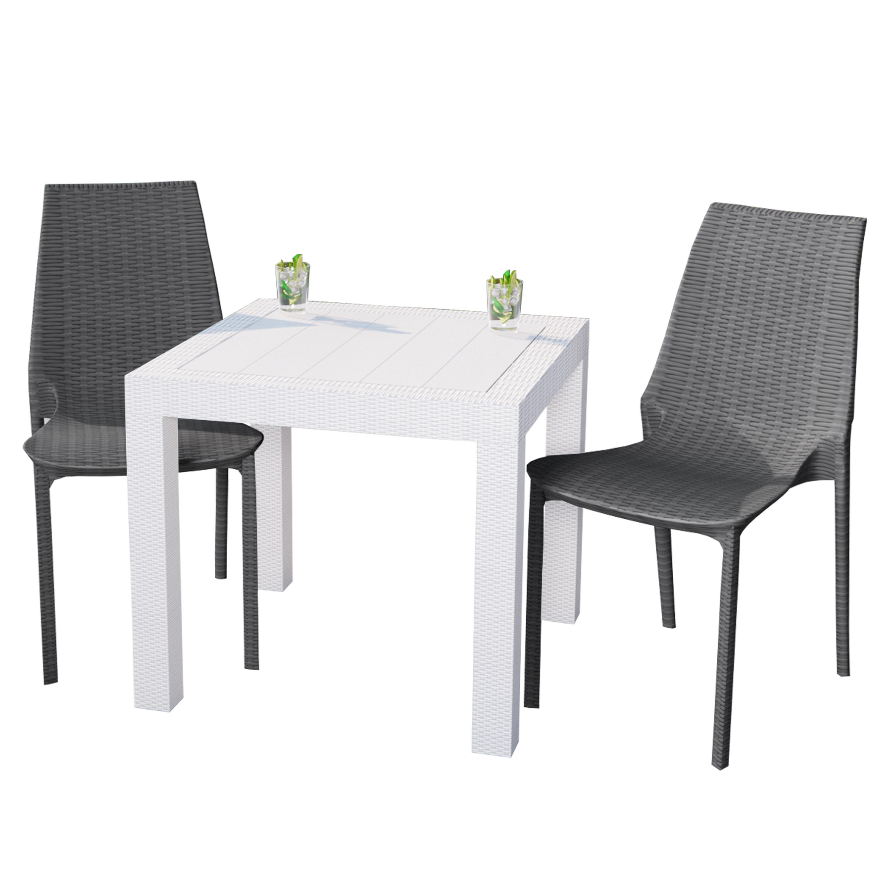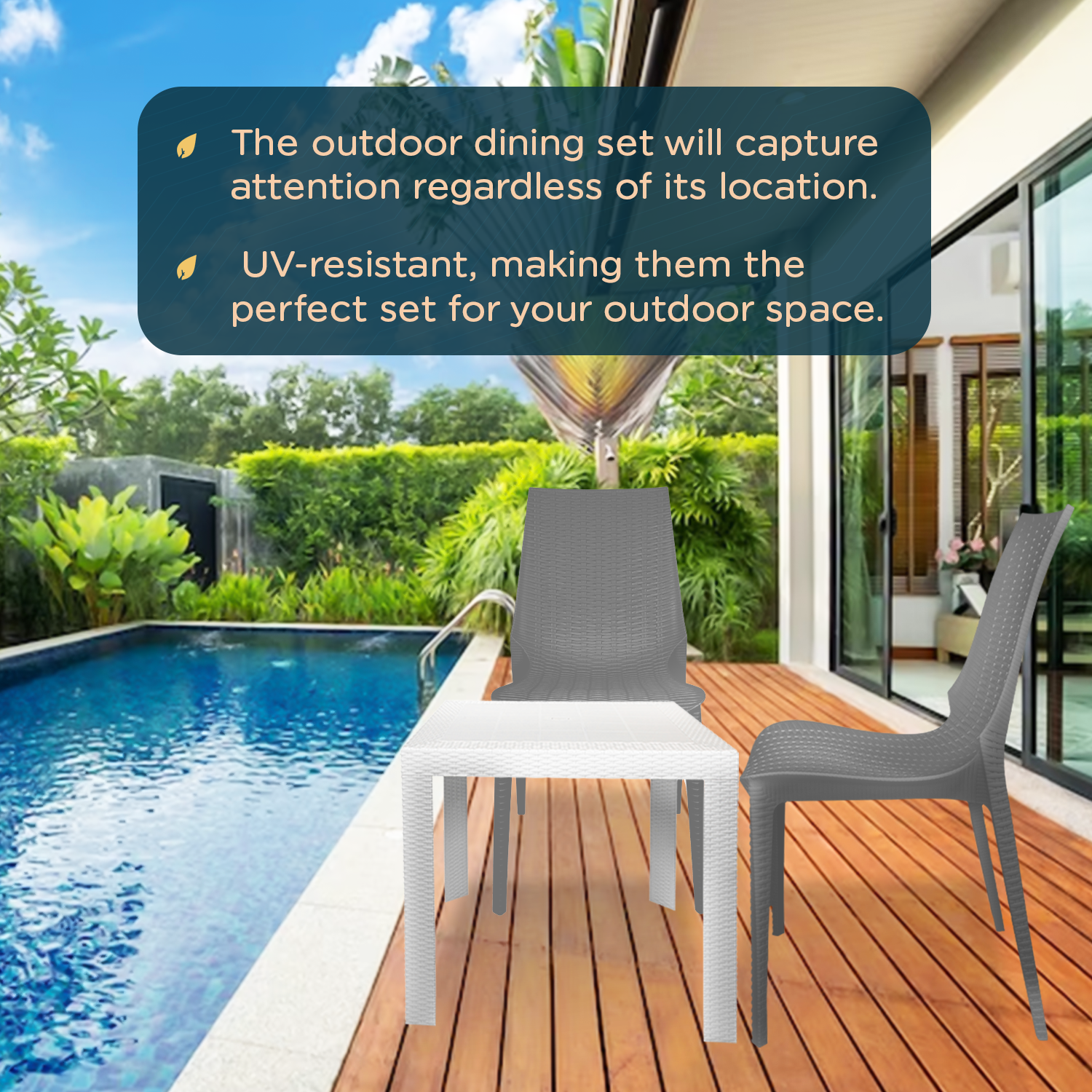 Kent Outdoor White Table With 2 Grey Chairs Dining Set