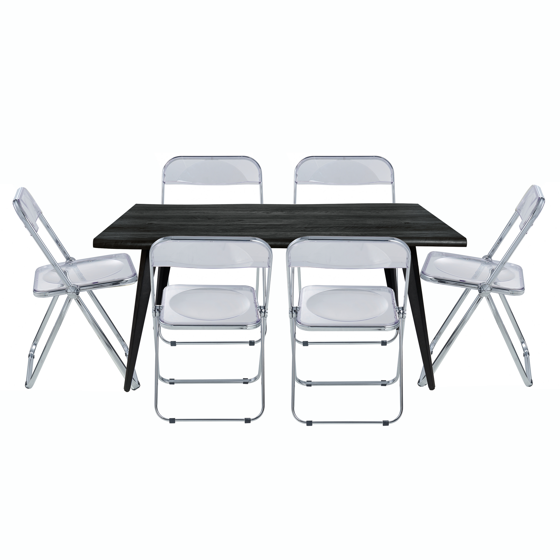 Lawrence 7-Piece Acrylic Folding Dining Chair and Rectangular Dining Table Set in Clear