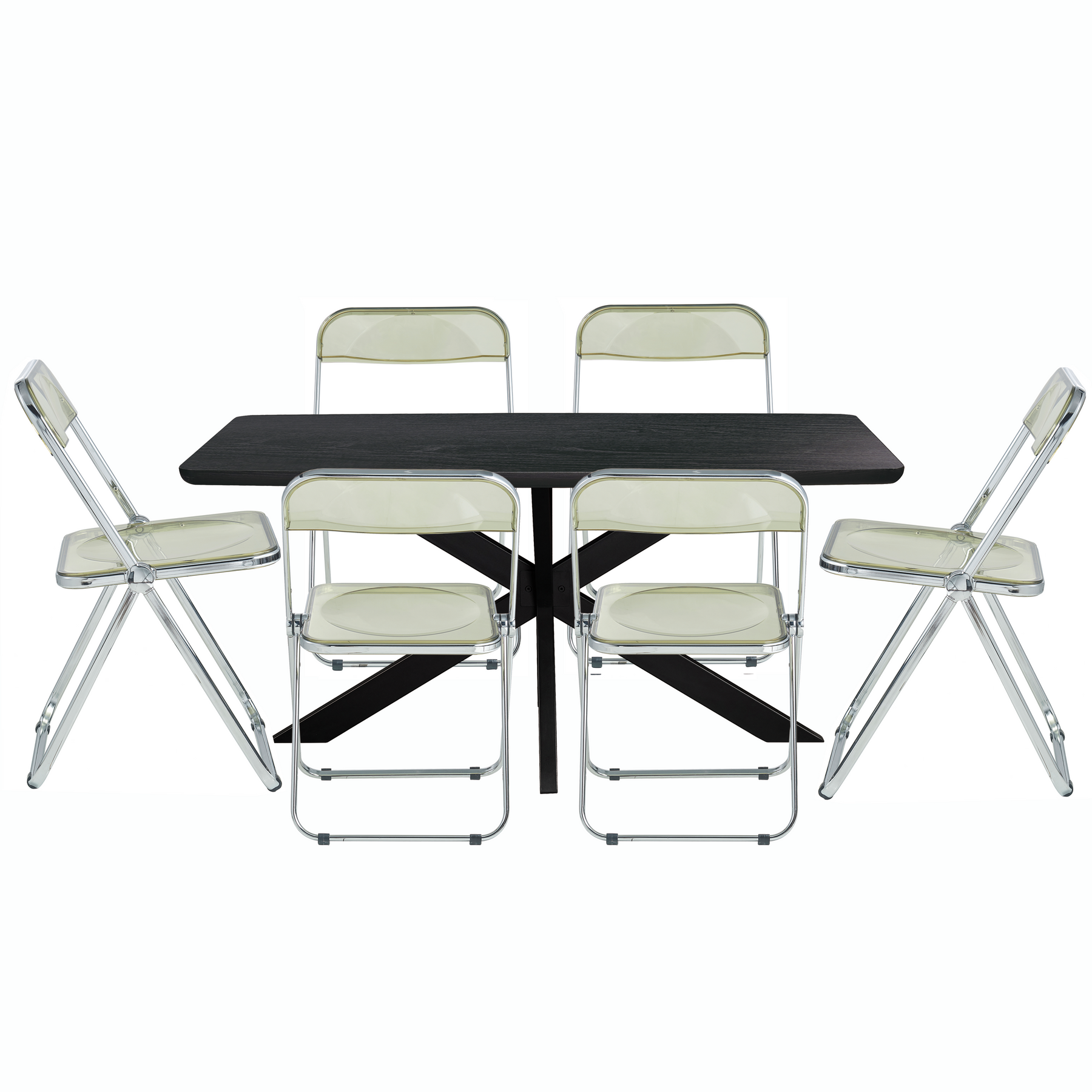 Lawrence 7-Piece Acrylic Folding Dining Chair and Rectangular Dining Table with Geometic Base Set in Amber