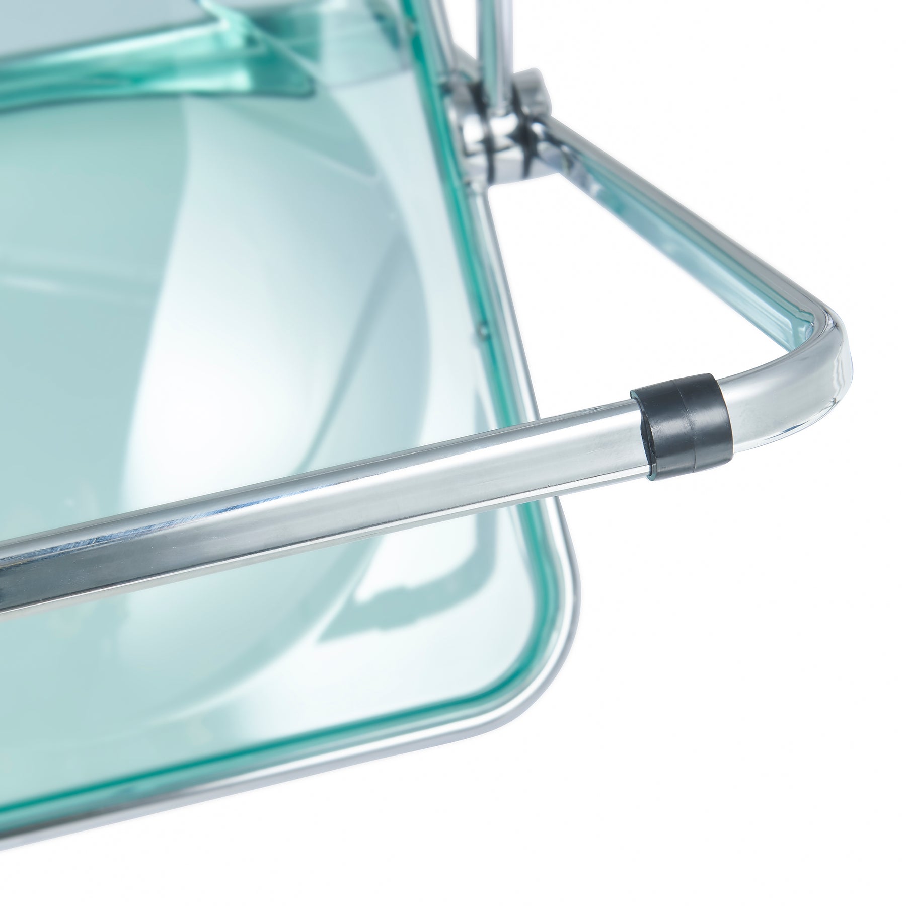 - The chairs feature a sleek and modern design with transparent acrylic seat and backrest. This adds a contemporary touch to your space and allows for a visually light and airy feel.