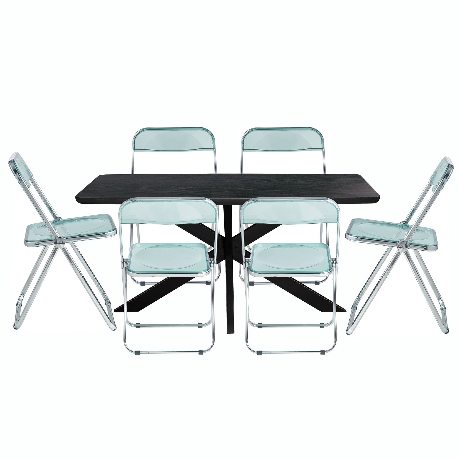 Lawrence 7-Piece Acrylic Folding Dining Chair and Rectangular Dining Table with Geometic Base Set in Jade Green