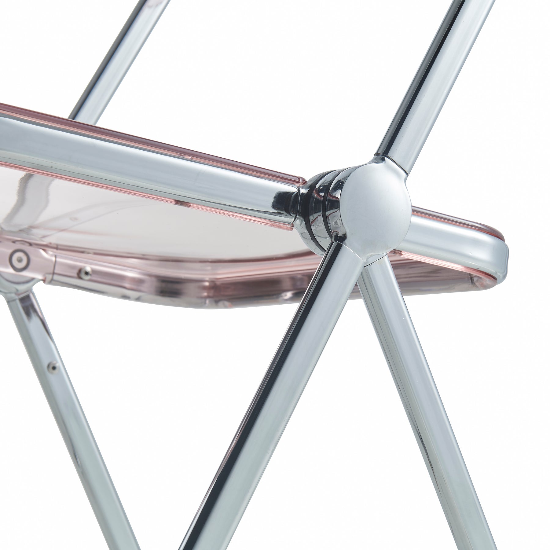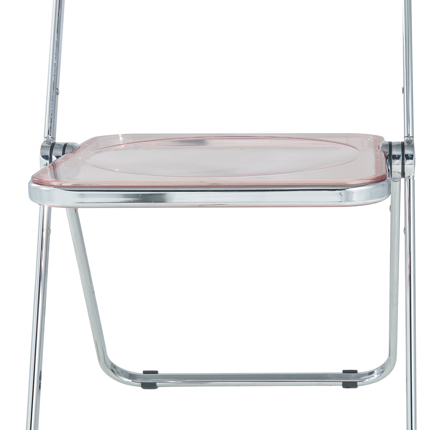 - The chairs feature a sleek and modern design with transparent acrylic seat and backrest. This adds a contemporary touch to your space and allows for a visually light and airy feel.