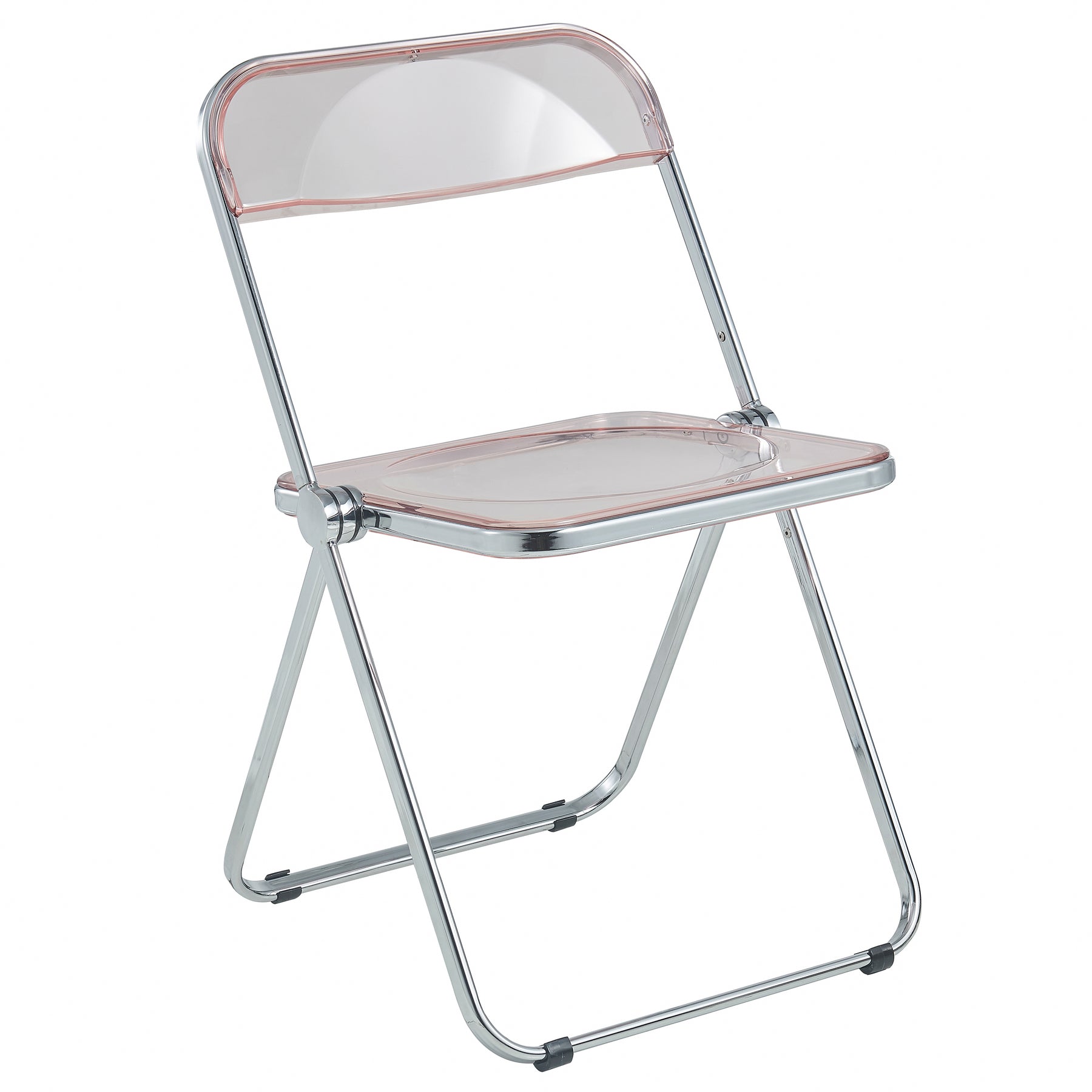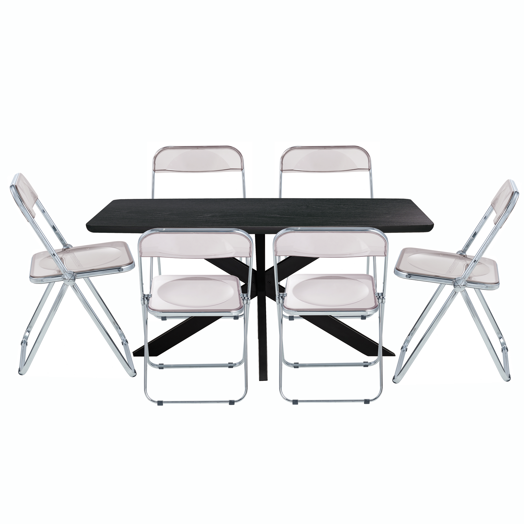 Lawrence 7-Piece Acrylic Folding Dining Chair and Rectangular Dining Table with Geometic Base Set in Rose Pink
