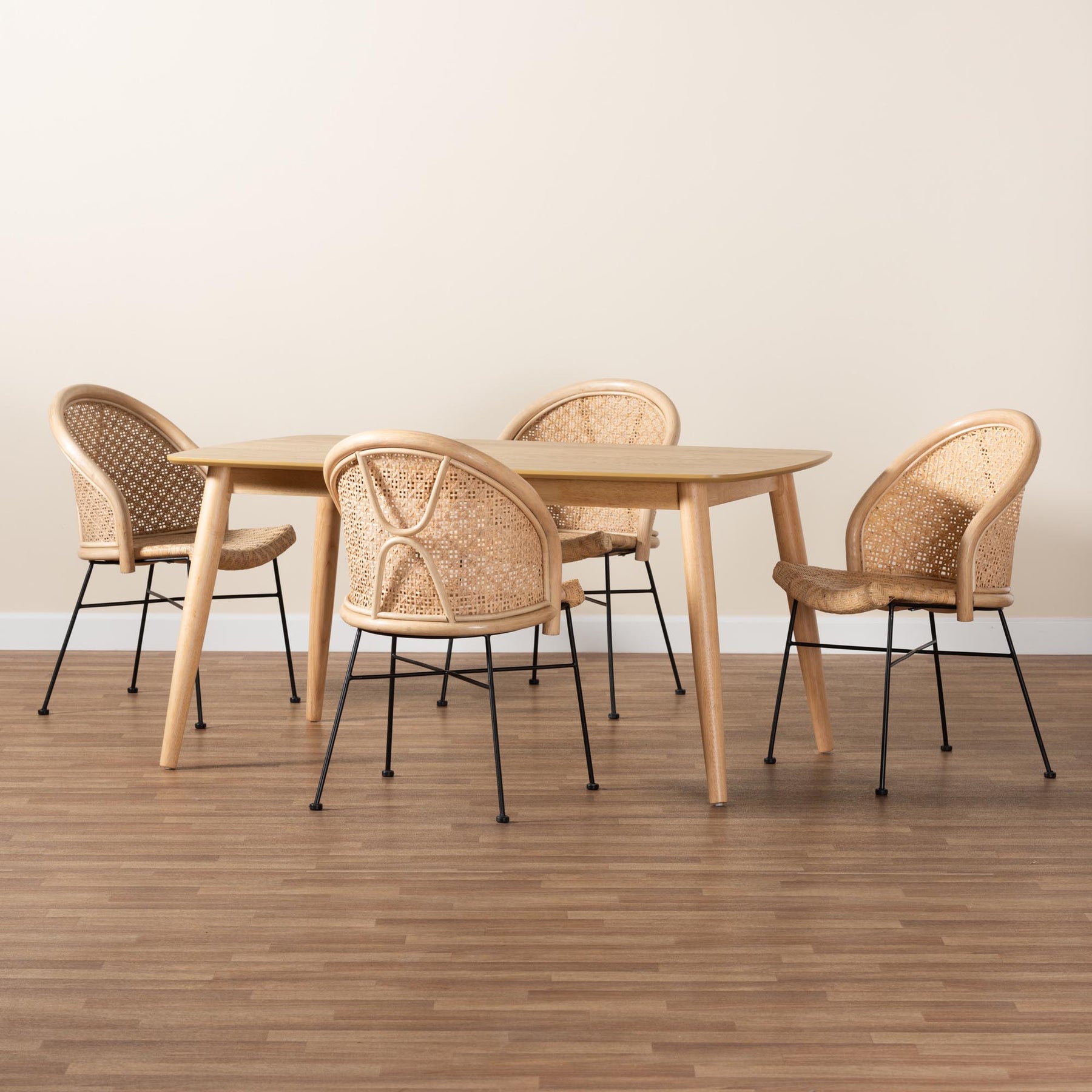 Lisa Modern Bohemian Natural Brown Rattan And Black Metal 5-piece Dining Set