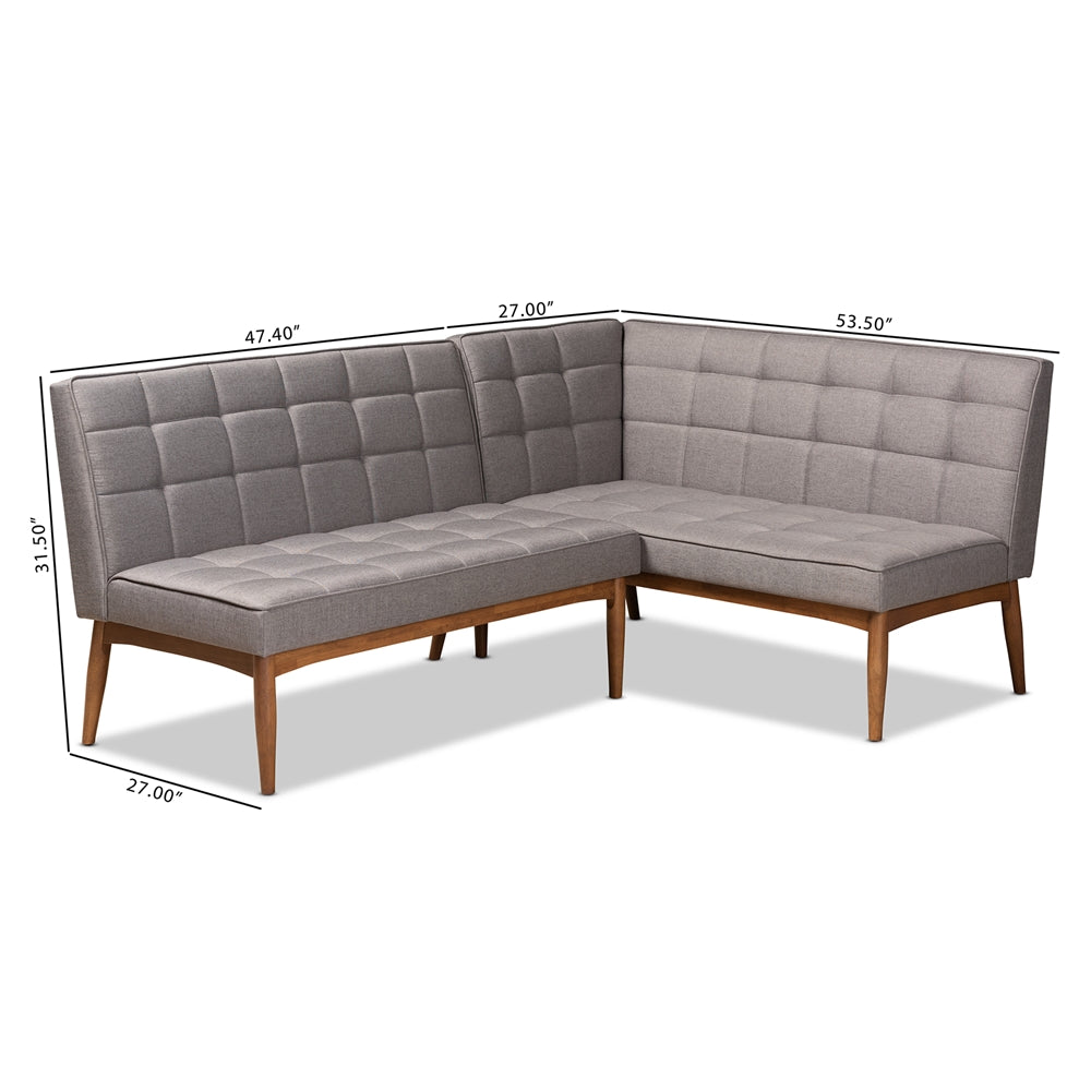 Sanford Mid-Century Modern Grey Fabric Upholstered and Walnut Brown Finished Wood 2-Piece Dining Nook Banquette Set