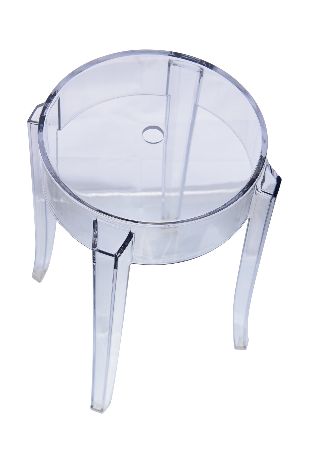 - This plastic Dining stool features a modern acrylic seat and water-resistant design that combines the durability and strength of plastic with the clarity and beauty of acrylic.