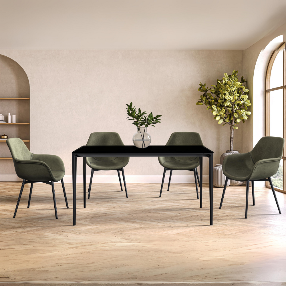 - Our dining kitchen table features a sleek modern design that effortlessly enhances any dining space with contemporary style. Its clean lines, minimalist aesthetic, and attention to detail create a sophisticated look that complements a variety of decor styles, making it a timeless addition to your home.
