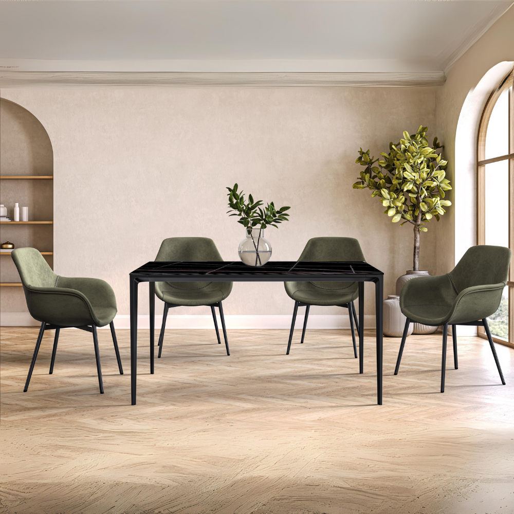 Avo Series Modern Dining Table Black Base, With 62 Black/Gold Sintered Stone Top