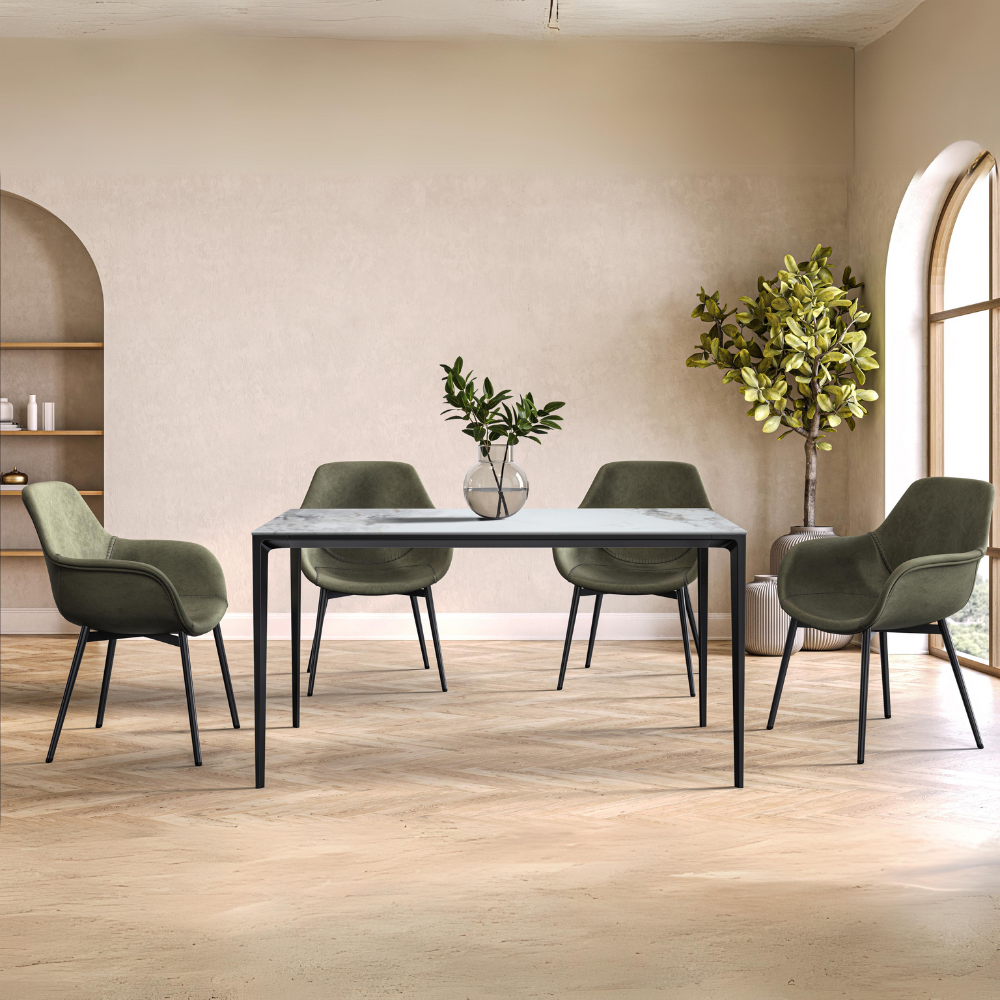 Discover the sleek and functional Avo Series Modern Dining Table by Skyline, a sophisticated addition to your dining space that seamlessly combines contemporary elegance with exceptional durability. Crafted with a sleek black aluminum base and a generously wide rectangular top available in luxurious sintered stone or sleek glass, this table is designed to captivate. Its fixed height design ensures stability, while the easy-to-clean surface simplifies maintenance for everyday convenience. The assembly process is straightforward, featuring a type of installation using grub screws to guarantee steadfast stability. Elevate your dining experience to new heights of style and functionality with the Avo Series Dining Table, where every meal becomes a delightful celebration of modern living.