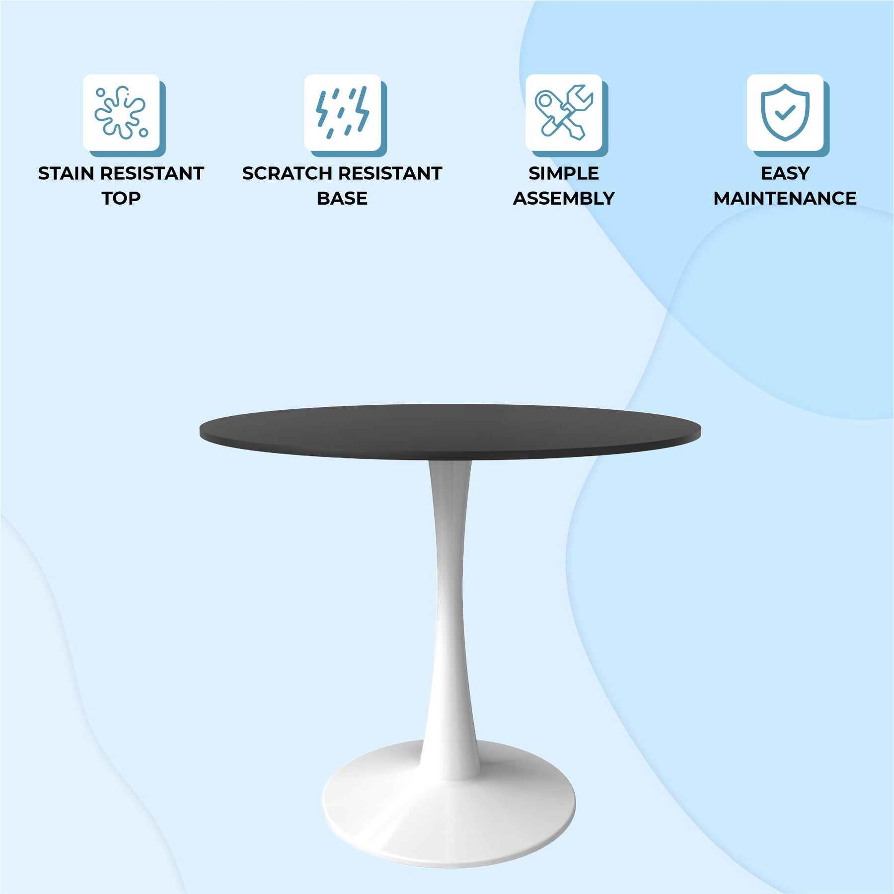 - - The modern dining tabletop is made of MDF wood, it offers durability and easy maintenance, while the round shape saves space. The smooth surface of the table gives it an elegant and modern look that complements any interior décor