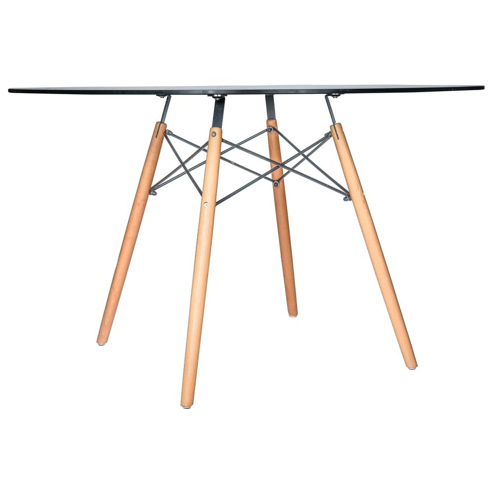 Dover Round Glass Top Dining Table With Natural Wood Eiffel Base