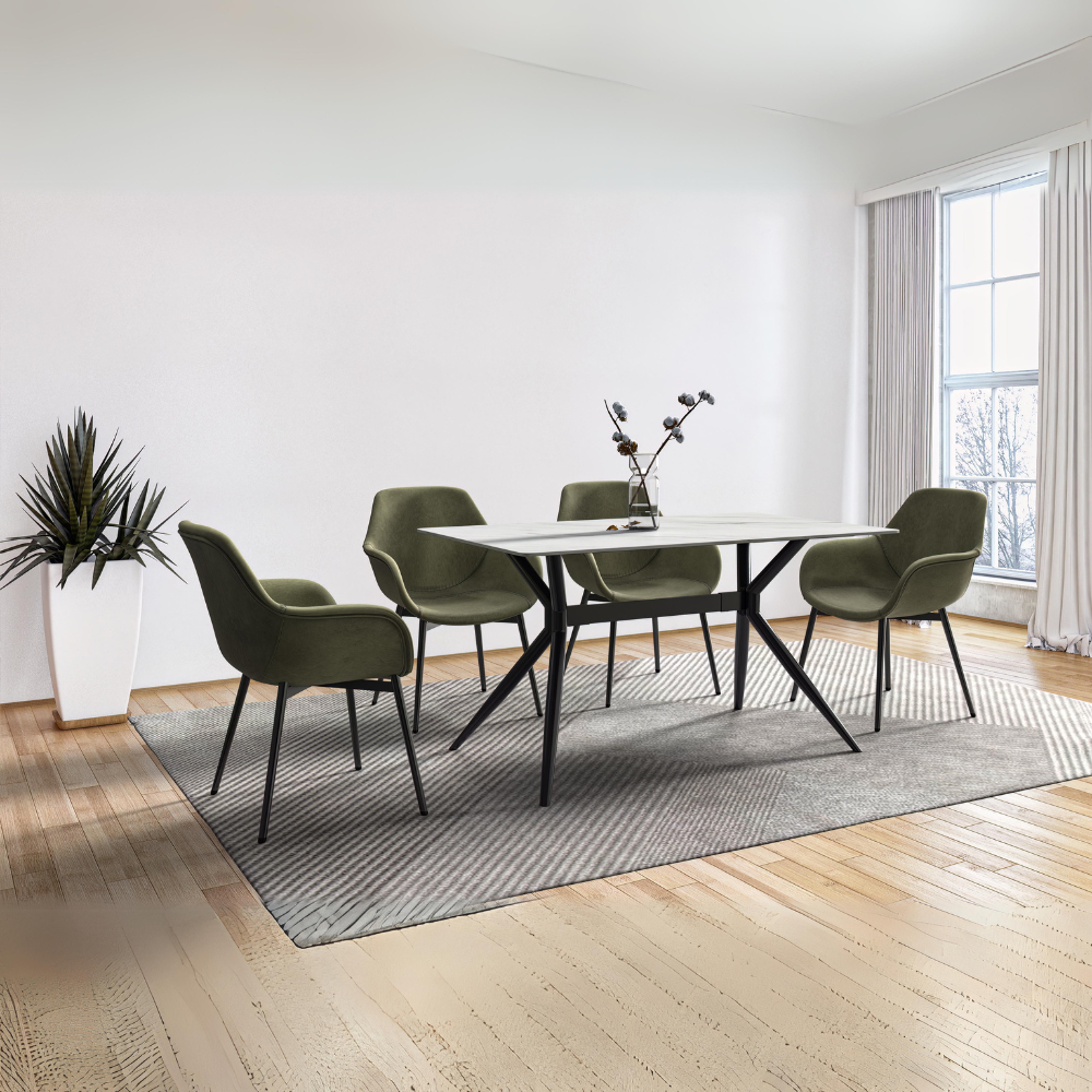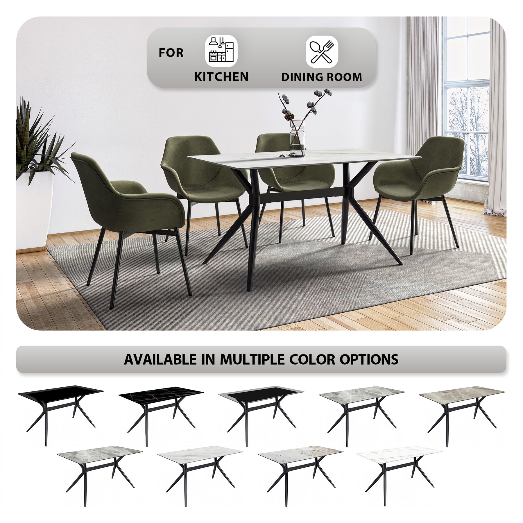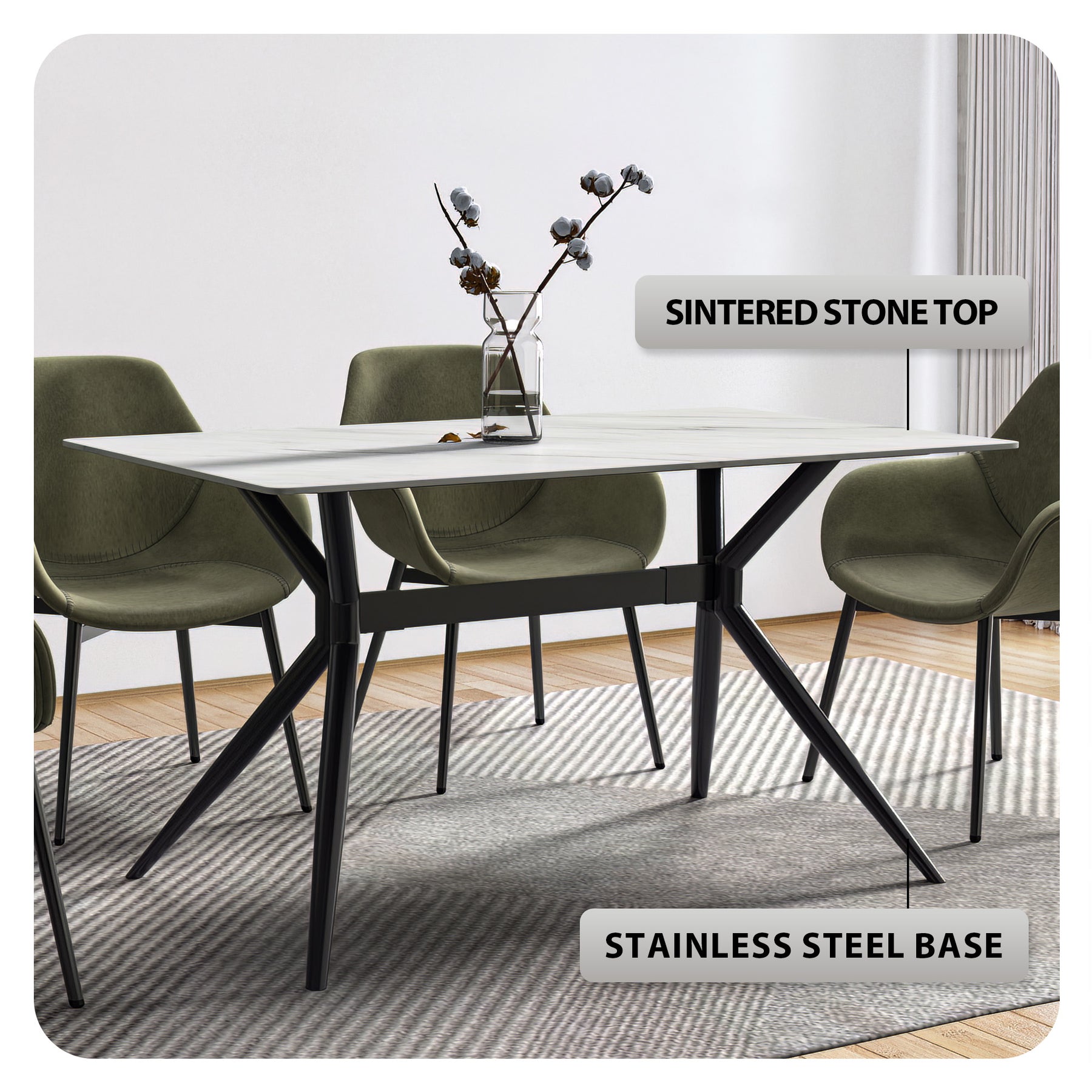 - Our dining table showcases a modern design that seamlessly improves any dining area with contemporary charm. Its clean lines and minimalist style serve as a chic centerpiece, and the use of materials like steel, sintered stone or glass, adds functionality to your dining experience. This blend of design and materials contributes to the overall atmosphere of your dining space, making it a stylish addition to your home