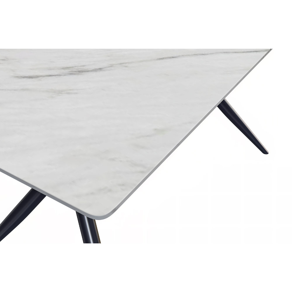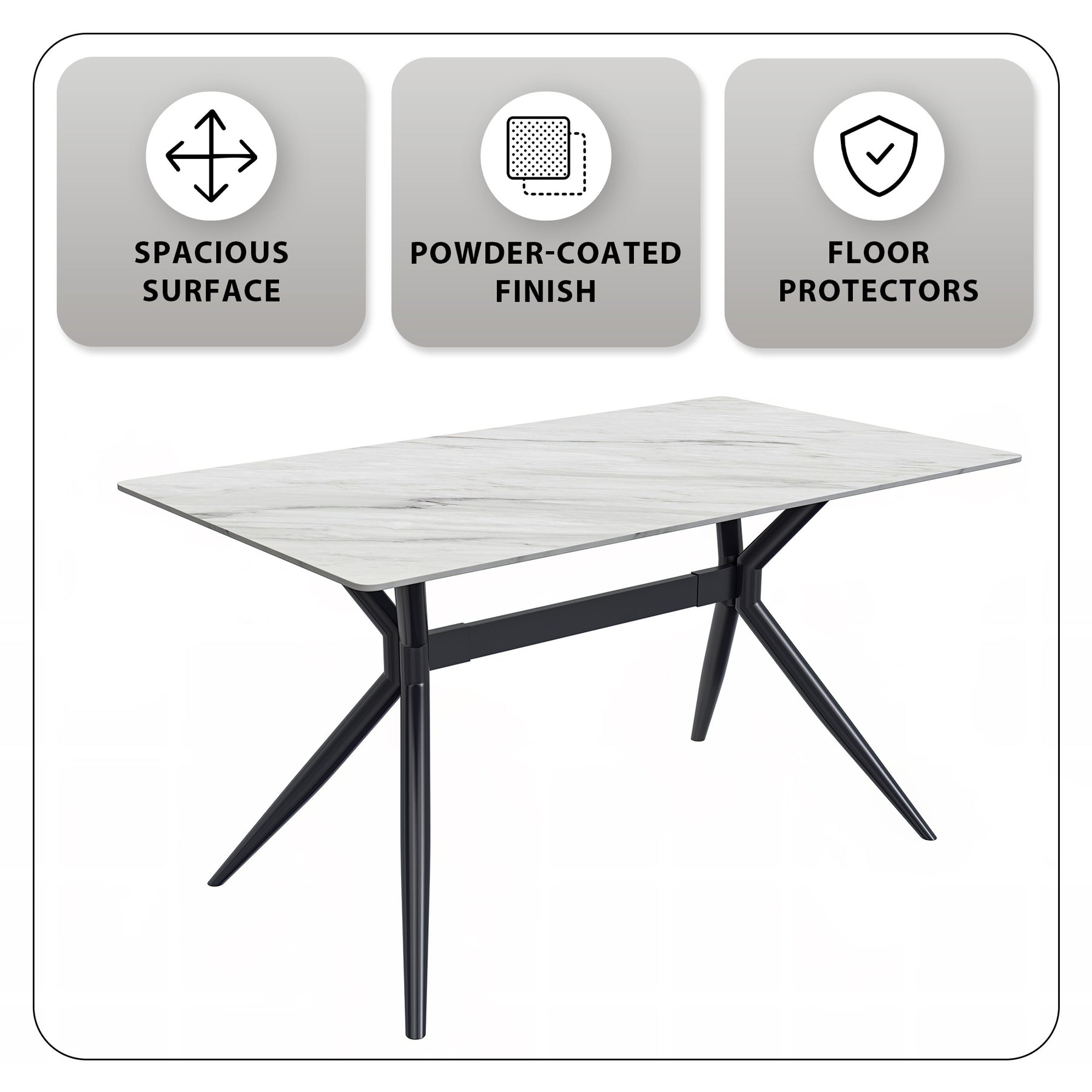 Elega Series Black Carbon Steel Dining Table 71 With White Sintered Stone Top