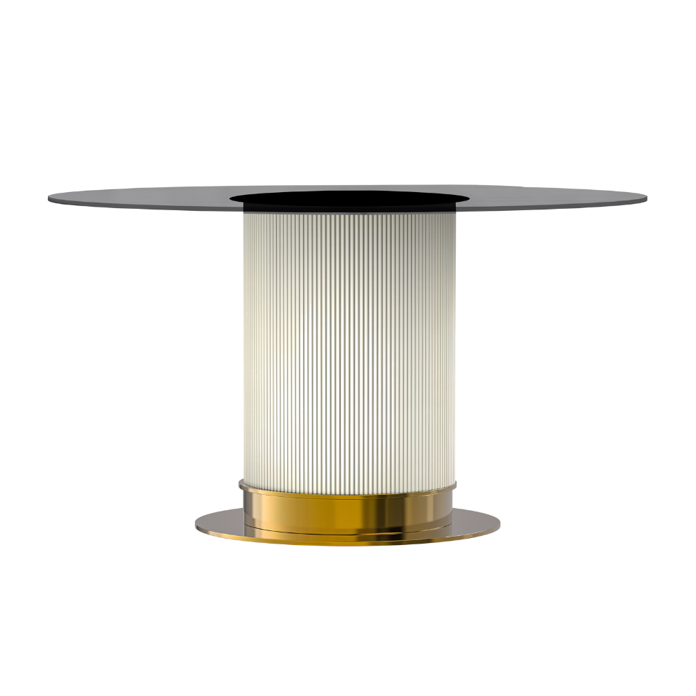 • Choose between our durable sintered stone top, known for its strength against heat and scratches, or the elegant glass top that adds sophistication due to its transparent design. Both options offer lasting quality and style to elevate your dining experience.