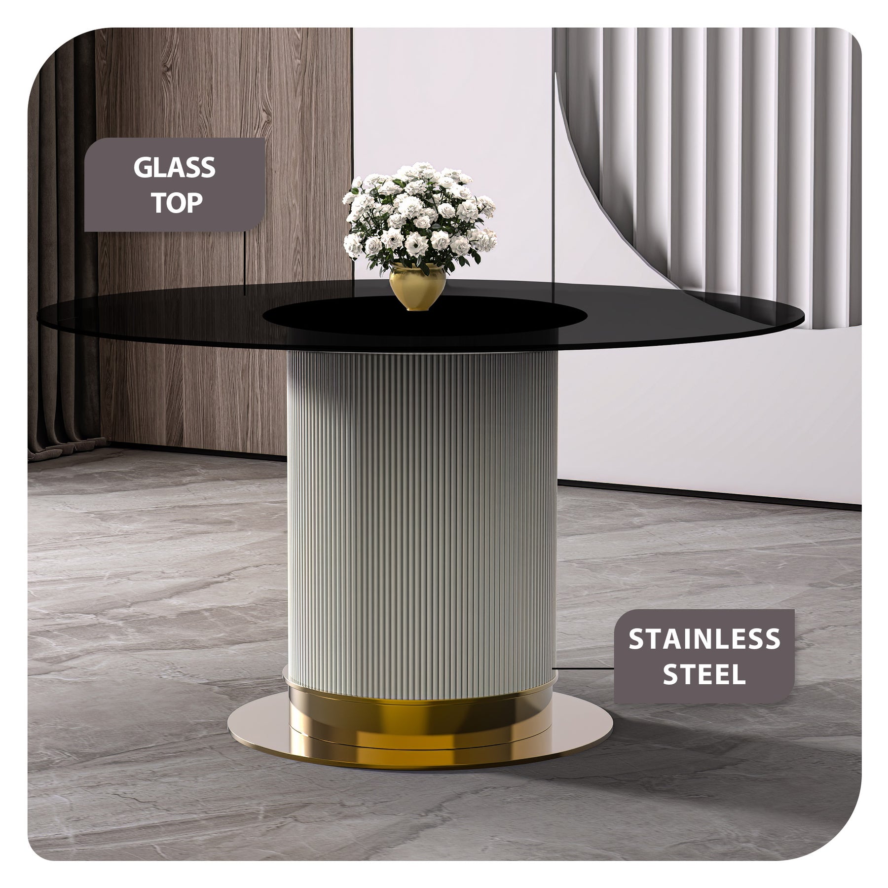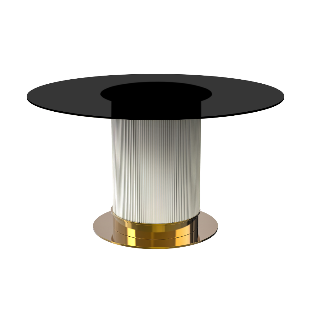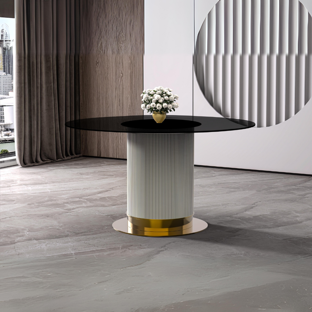 Jexis Series Round Dining Table White\Gold Base with 60 Round BLack Glass Top