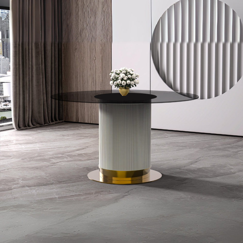 Elevate your dining experience with the chic and adaptable Jexis Series Modern Round Dining Table by Skyline. Crafted with a robust stainless steel base and a round top in your choice of sintered stone or glass, this table seamlessly merges modern aesthetics with lasting durability. Its fixed height guarantees stability, while the easy-to-clean surface simplifies maintenance, ensuring your table looks pristine with minimal effort. Assembly is straightforward, and the table's versatility effortlessly transitions between casual family meals and elegant dinner parties. Elevate your dining space with the Jexis Series Dining Table and indulge in timeless style and functionality.