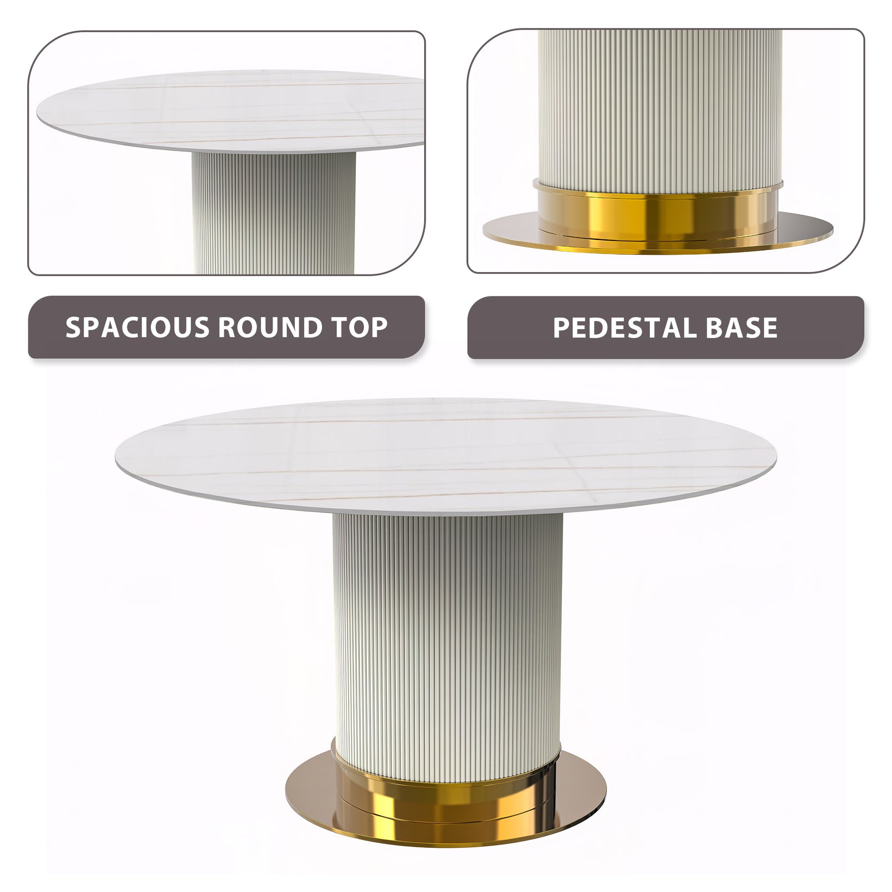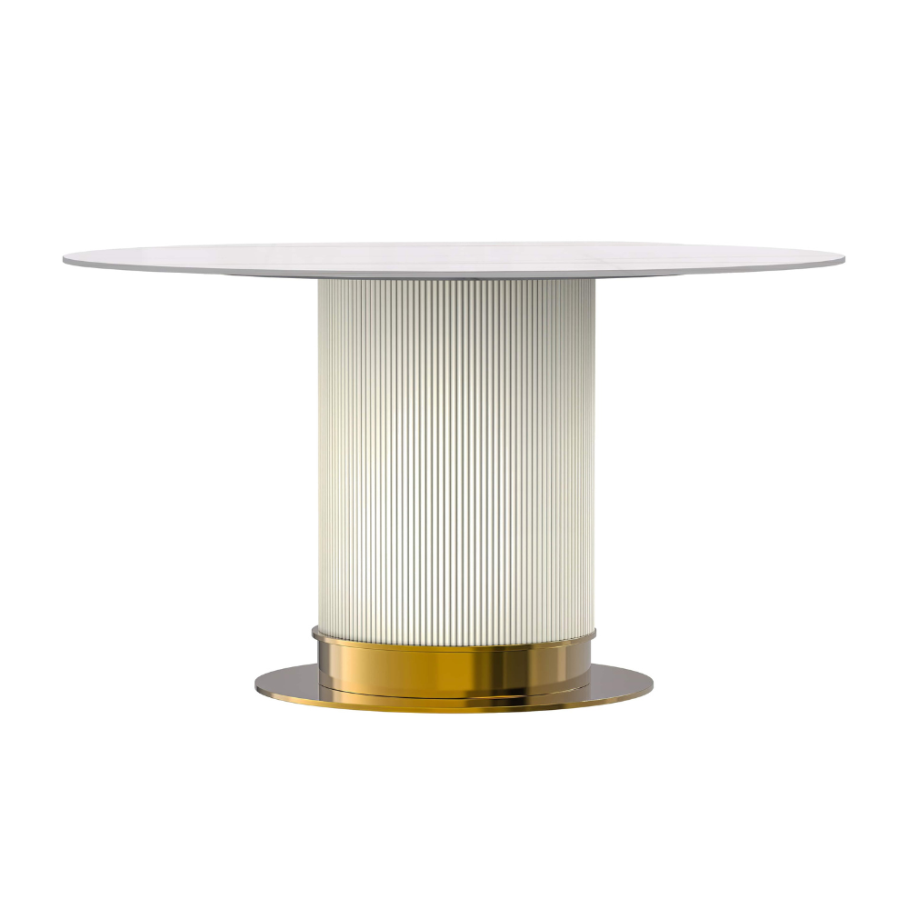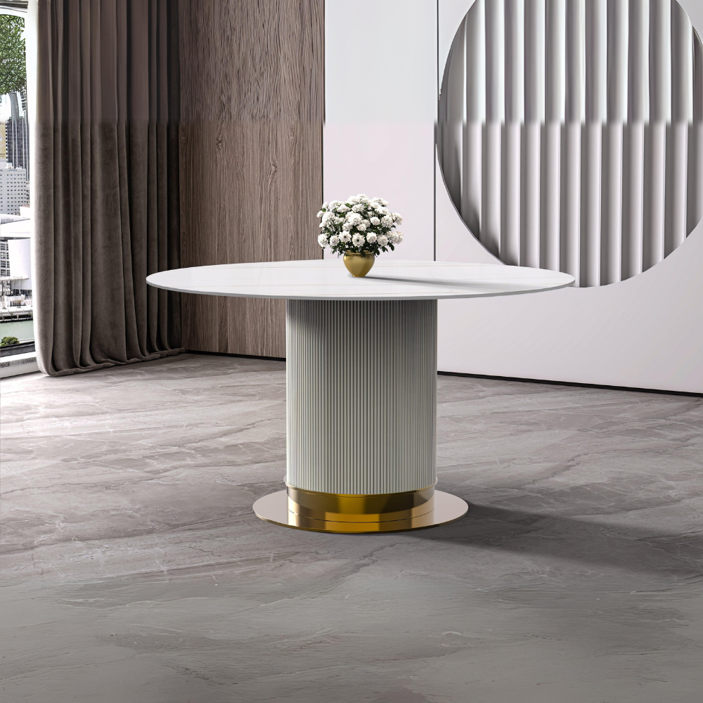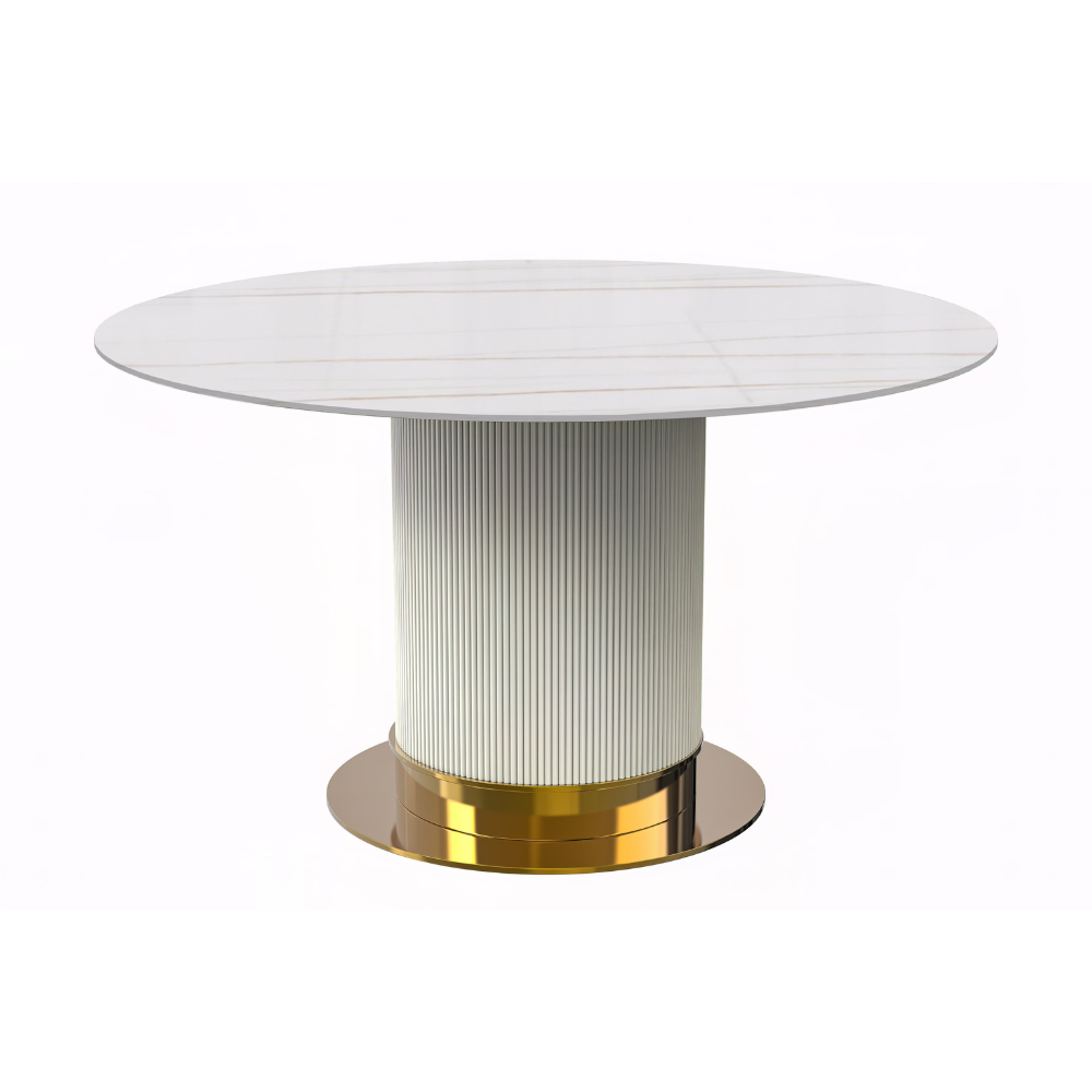 Jexis Series Round Dining Table White\Gold Base with 60 Round White/Gold Sintered Stone Top