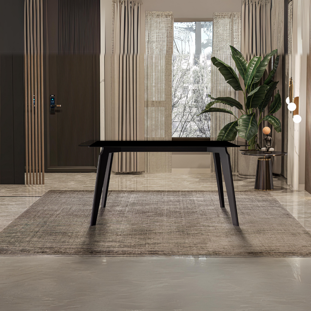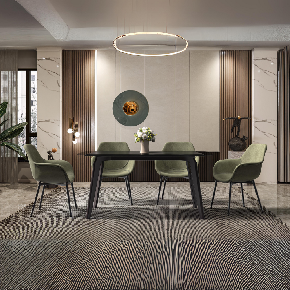 - Crafted from premium sintered stone or glass tabletops, our modern dining table boasts advanced materials renowned for their durability and minimal upkeep requirements. The sintered stone surface provides heat and scratch resistance while the glass provides sophistication with its sleek and reflective surface.
