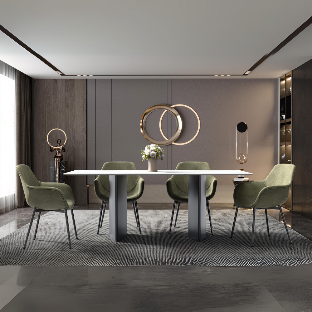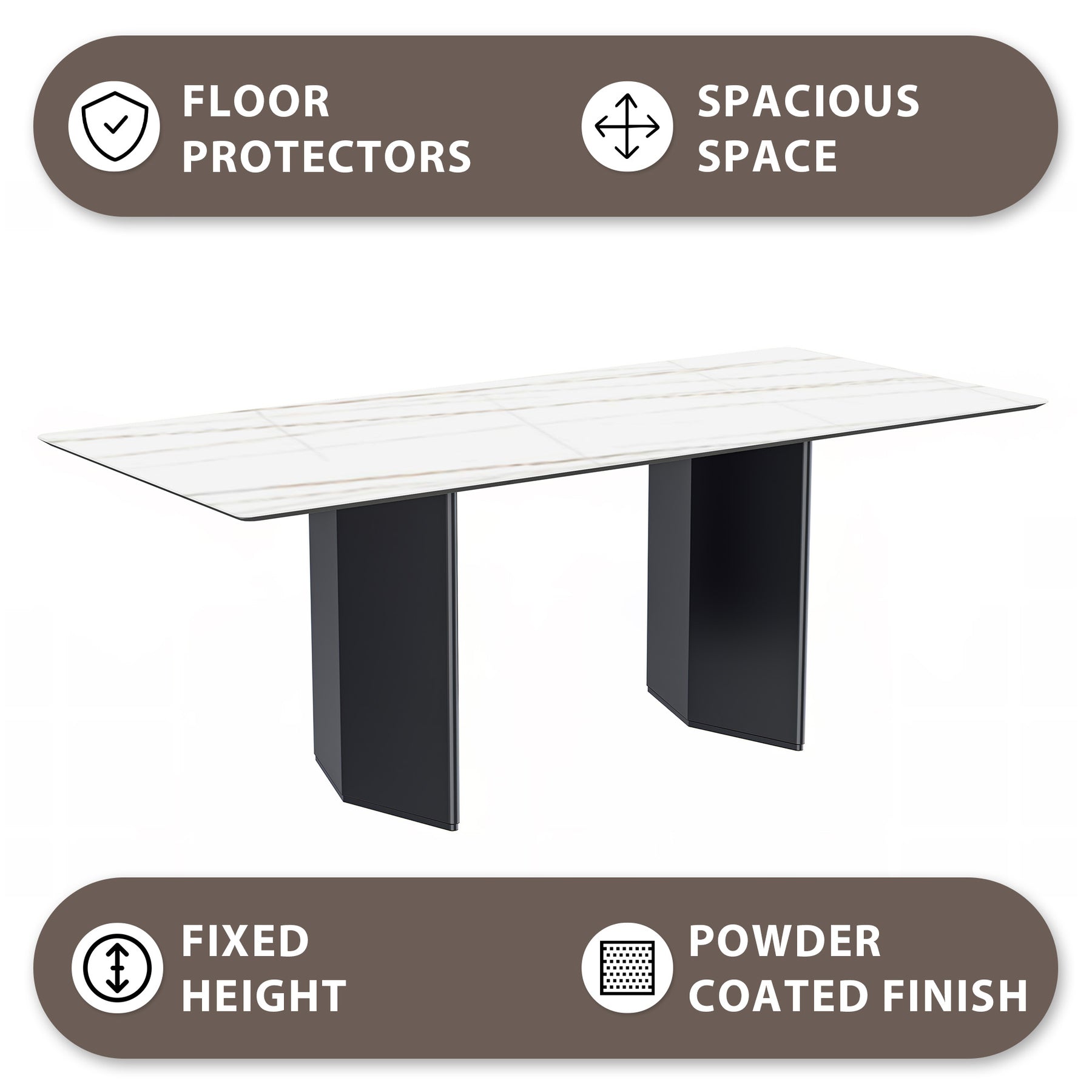 - Introducing our sleek dining table, perfect for bringing a contemporary vibe to your kitchen or dining area. Its clean lines and rectangular shape make it an ideal match for modern homes. Crafted with durability in mind, it features a sturdy steel base and offers your choice of a glass or sintered stone top. Whether you're enjoying everyday meals with family or entertaining guests for a special occasion, this table is designed to make a statement and enhance your dining experience effortlessly.