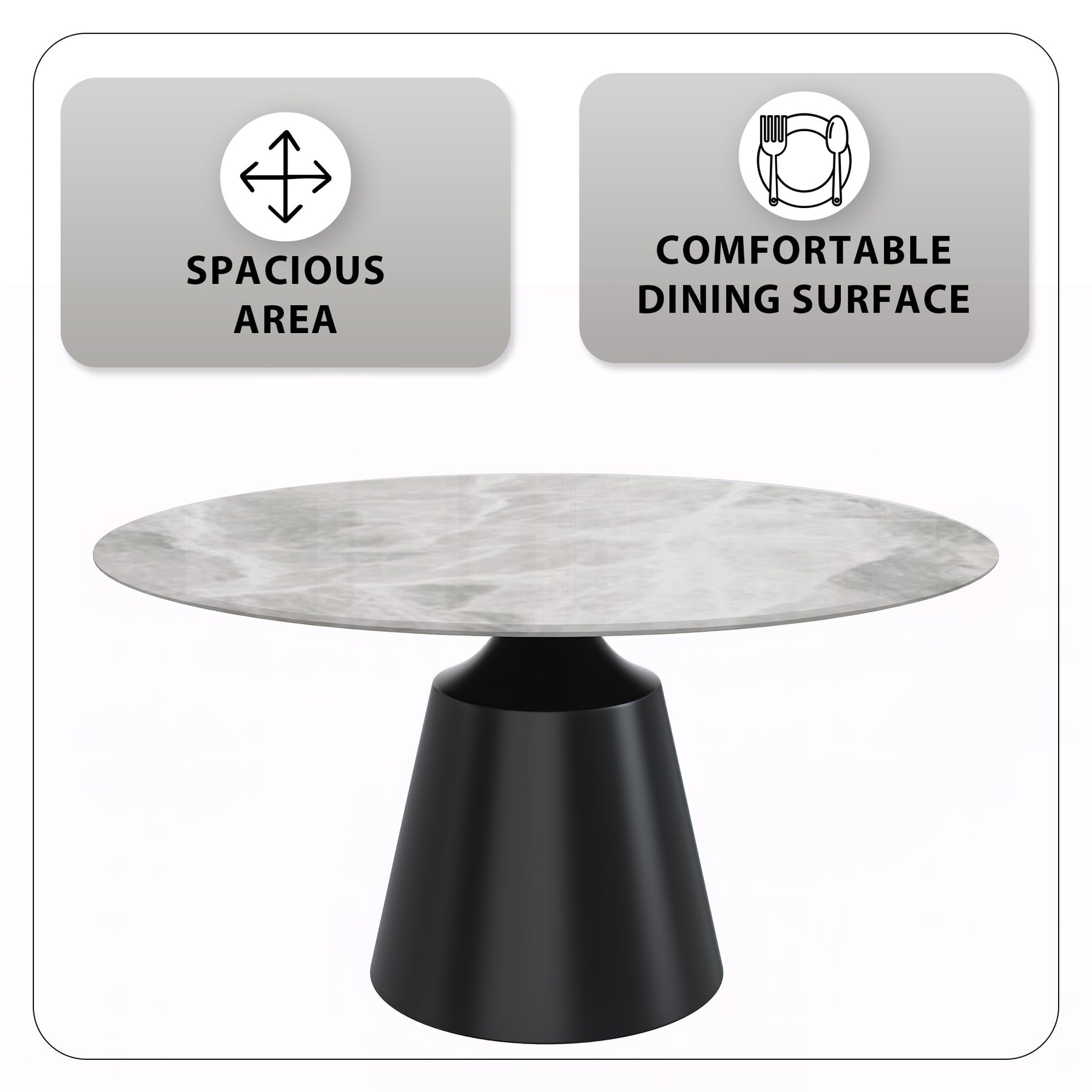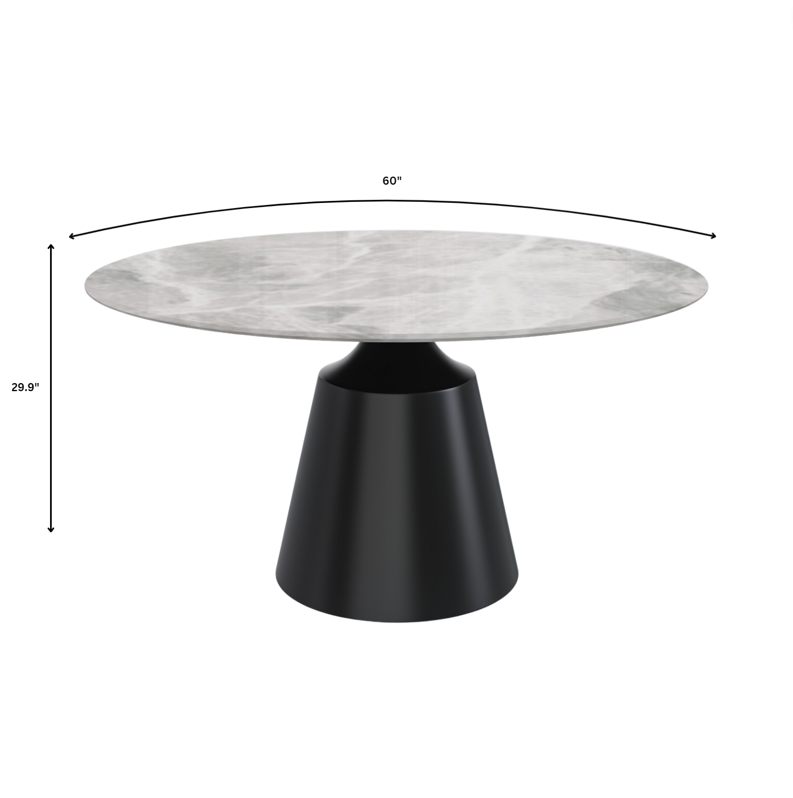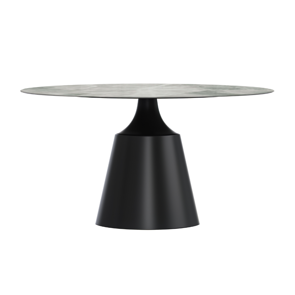 Prynn Series Round Dining Table Black Base with 60 Round Light Grey Sintered Stone Top