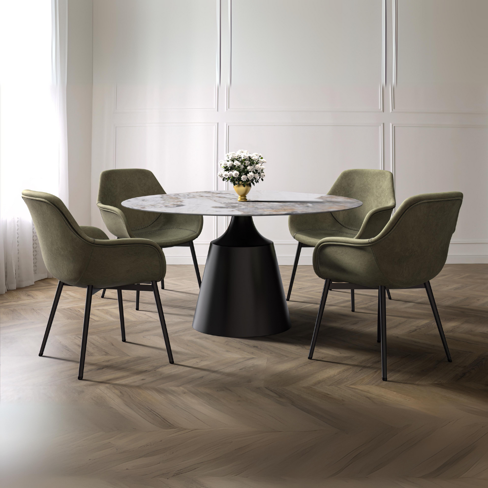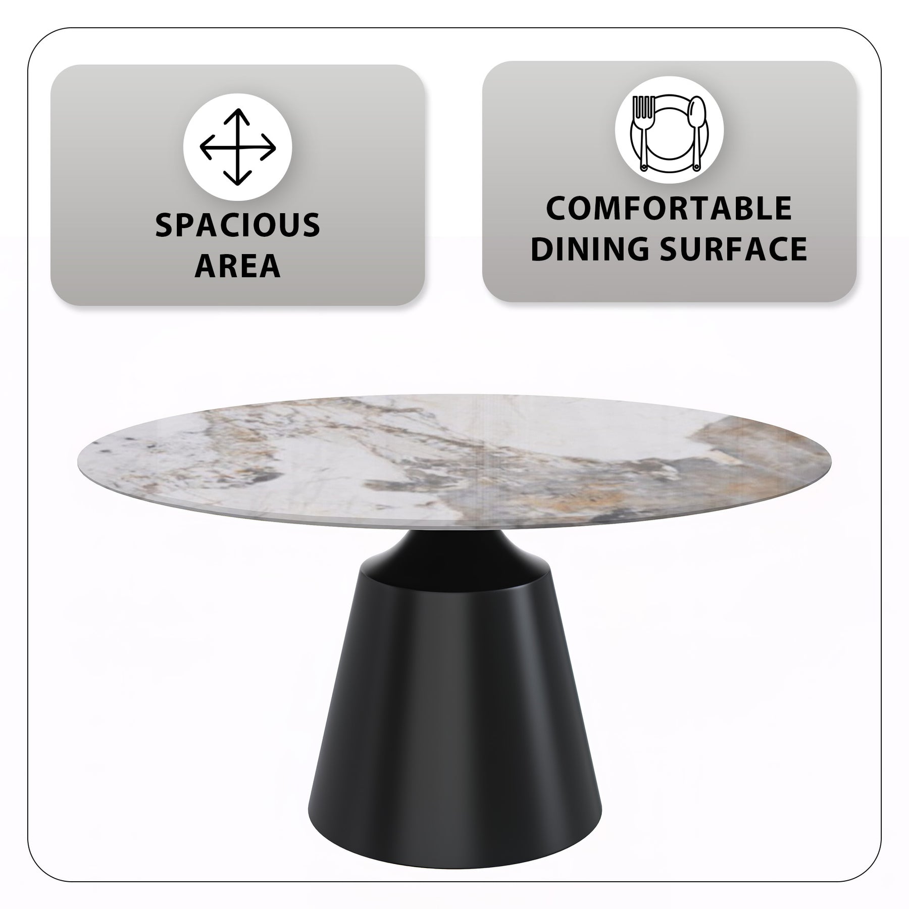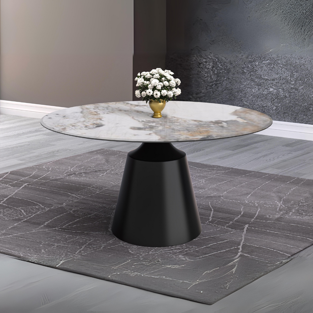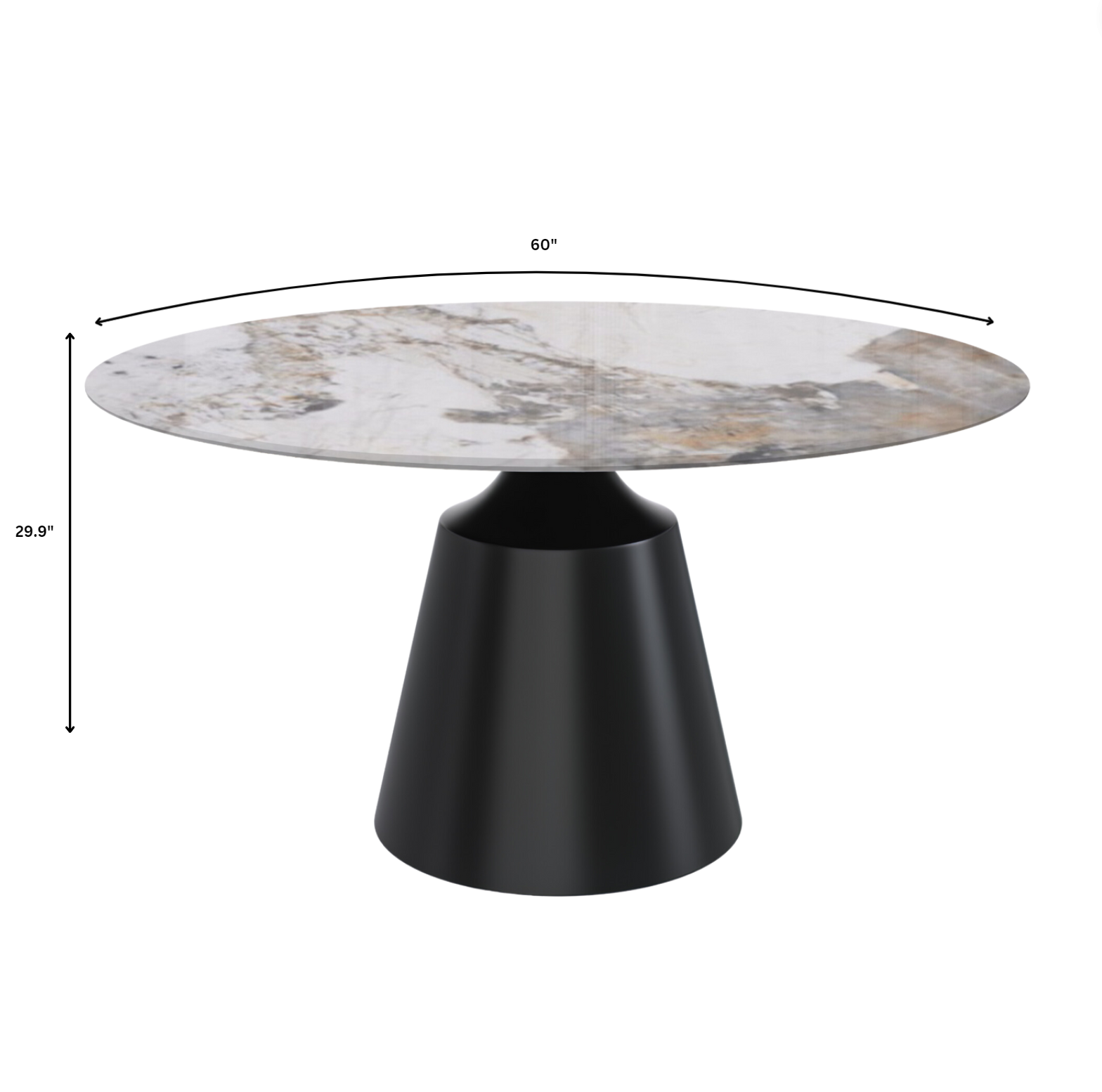 Prynn Series Round Dining Table Black Base with 60 Round Medium Grey Sintered Stone Top