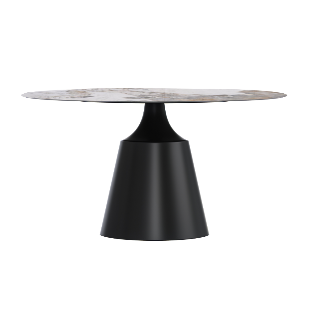 - Discover our contemporary dining table, meticulously crafted to elevate your kitchen or dining area with sleek style. Its clean lines and rounded shape tabletop seamlessly complement modern home decor, while the robust stainless steel pedestal base ensures stability and longevity. Choose between a glass or sintered stone tabletop to suit your preferences. Elevate your dining experience effortlessly with this versatile addition to your home.