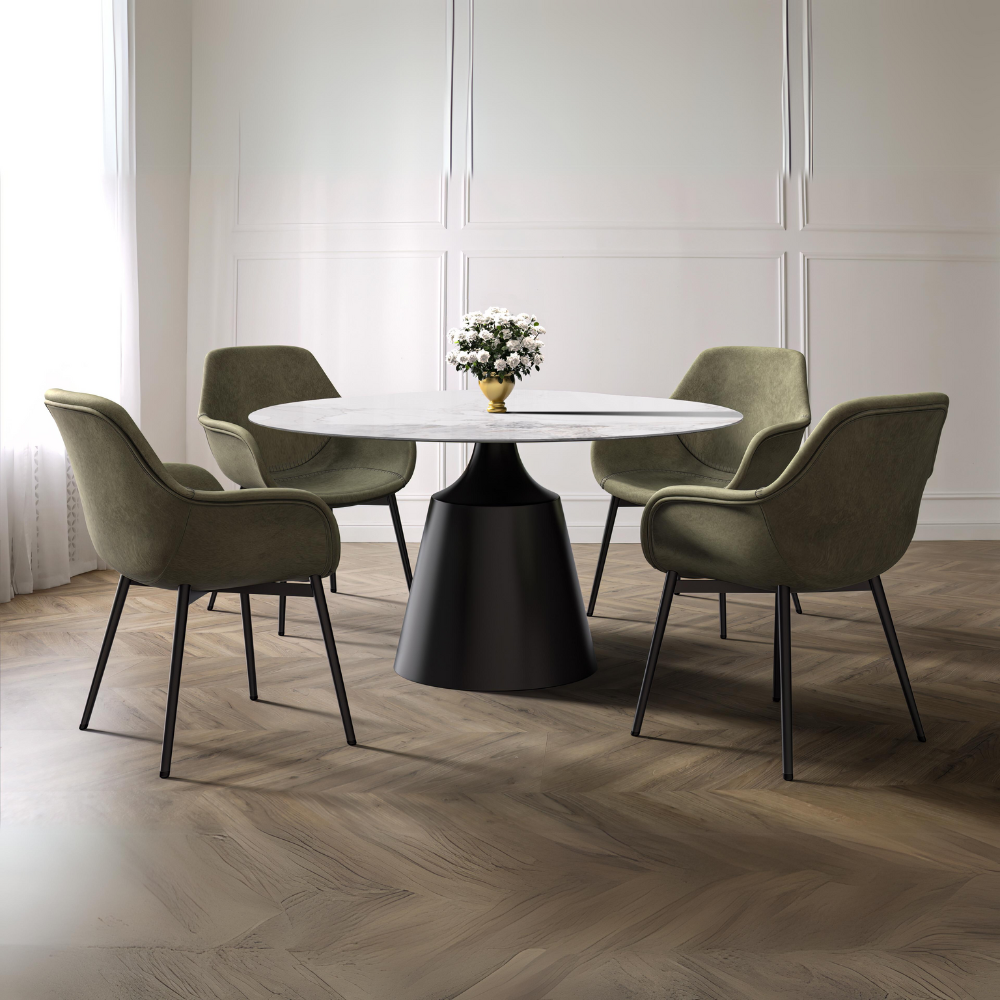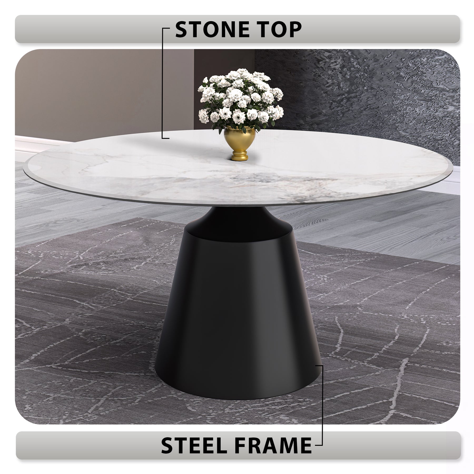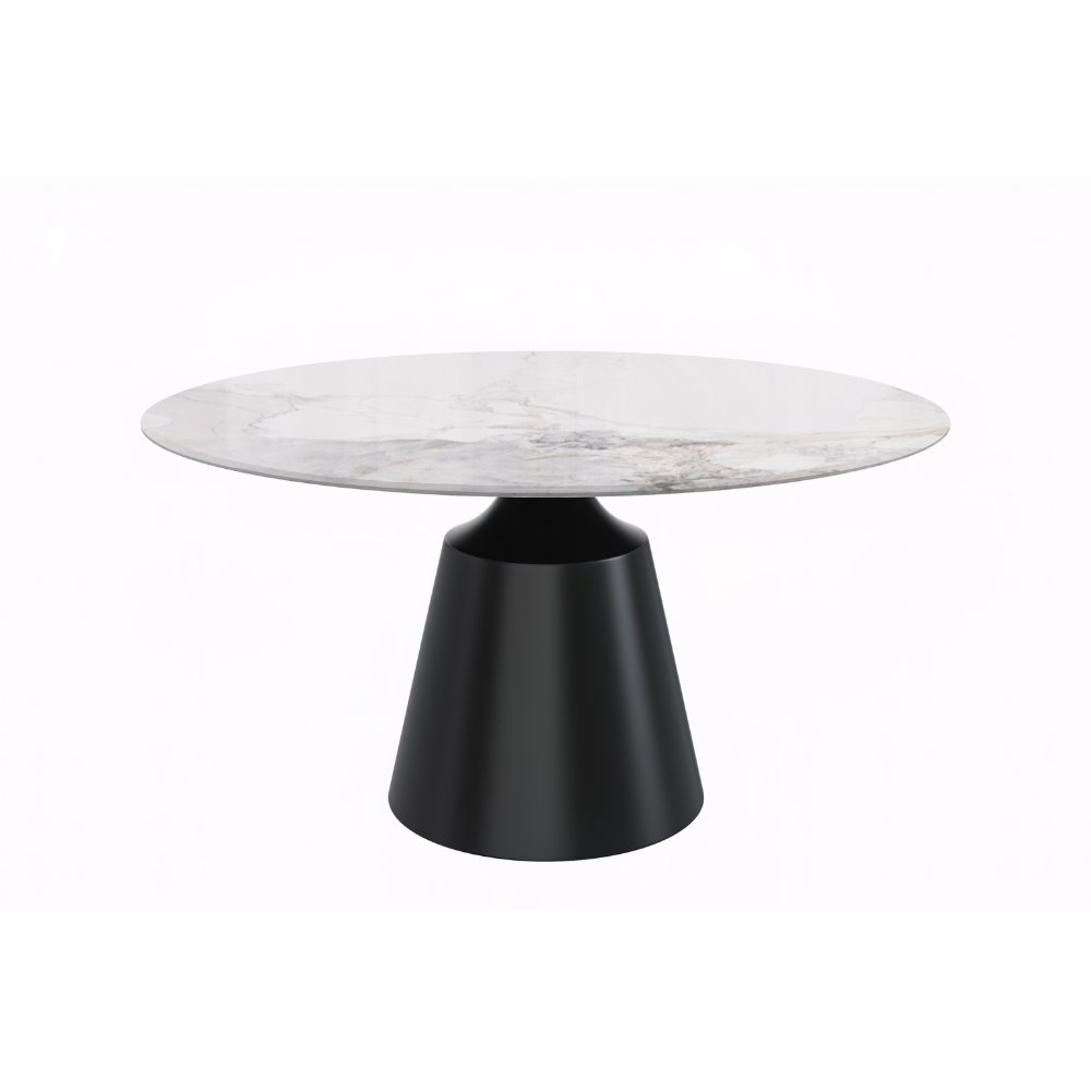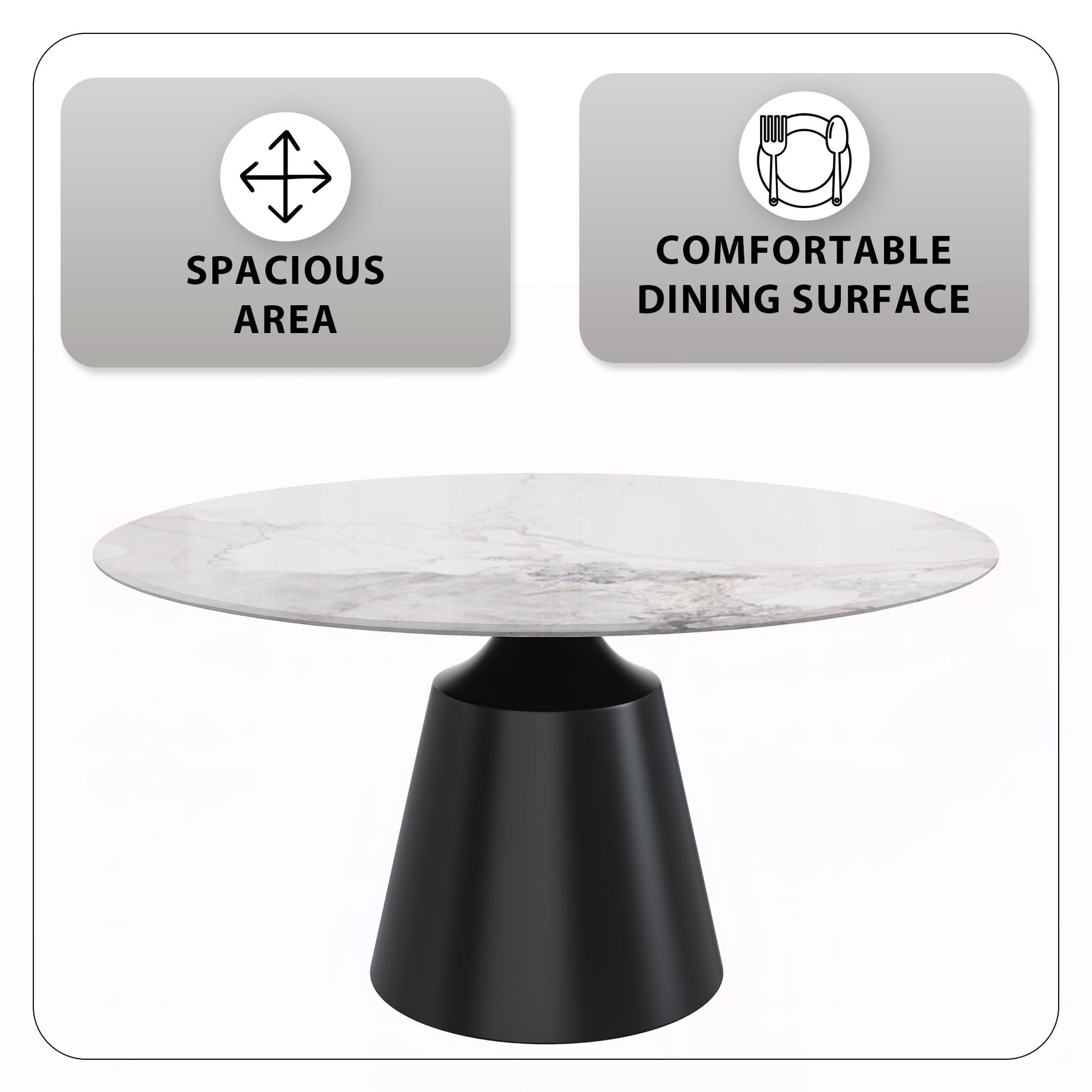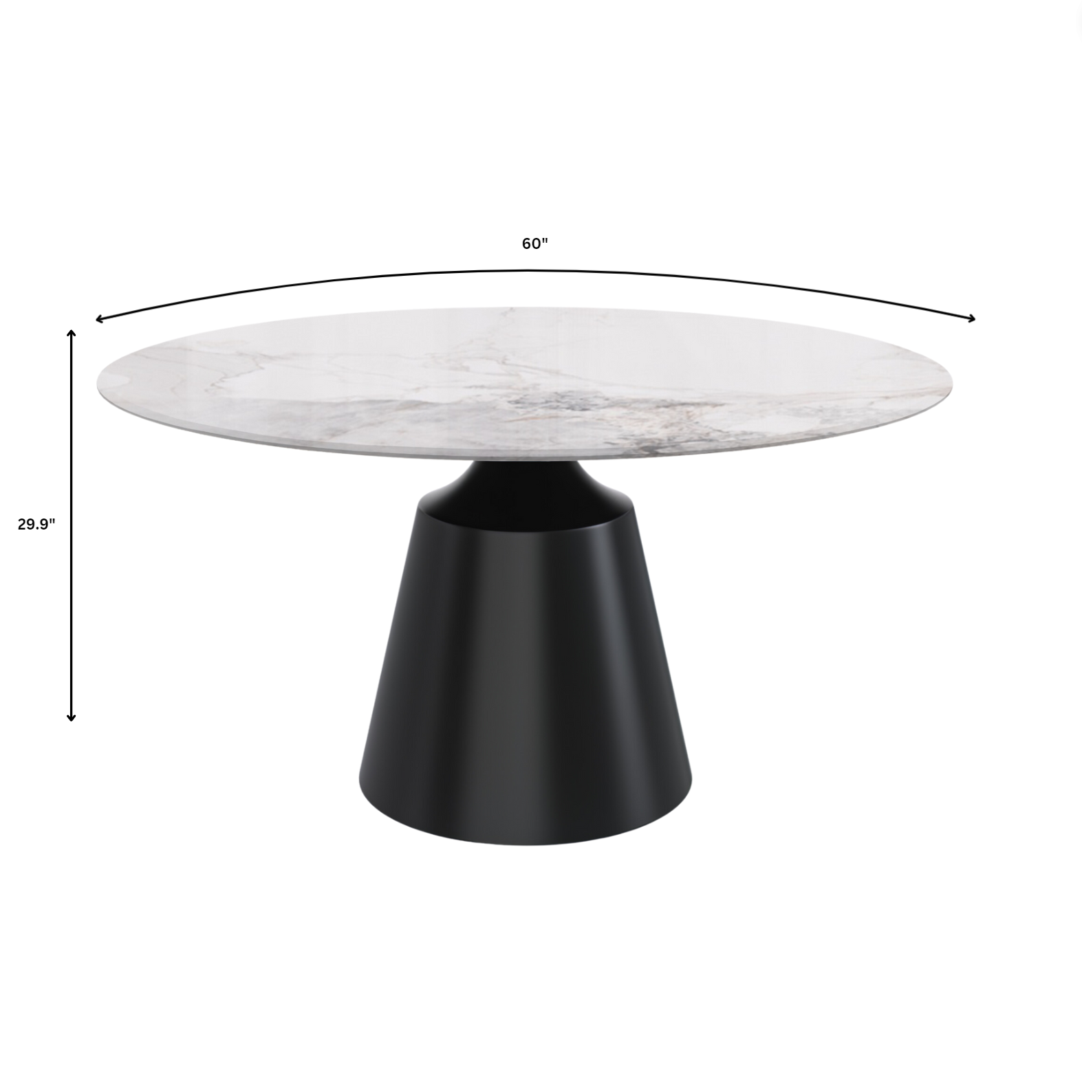Prynn Series Round Dining Table Black Base with 60 Round White Grey Sintered Stone Top