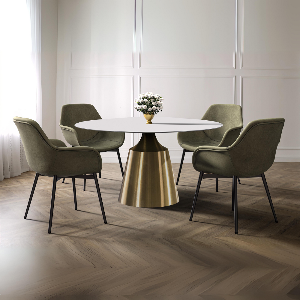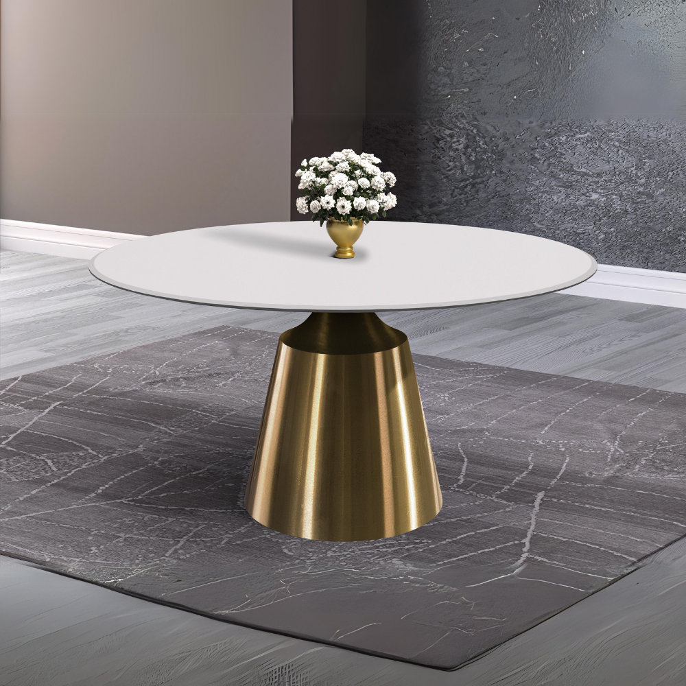 Prynn Series Round Dining Table Gold Base with 60 Round Solid White Sintered Stone Top