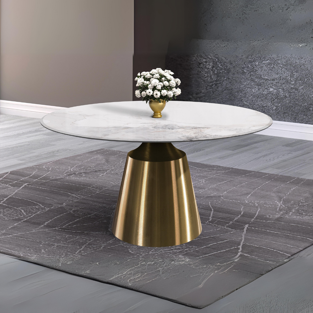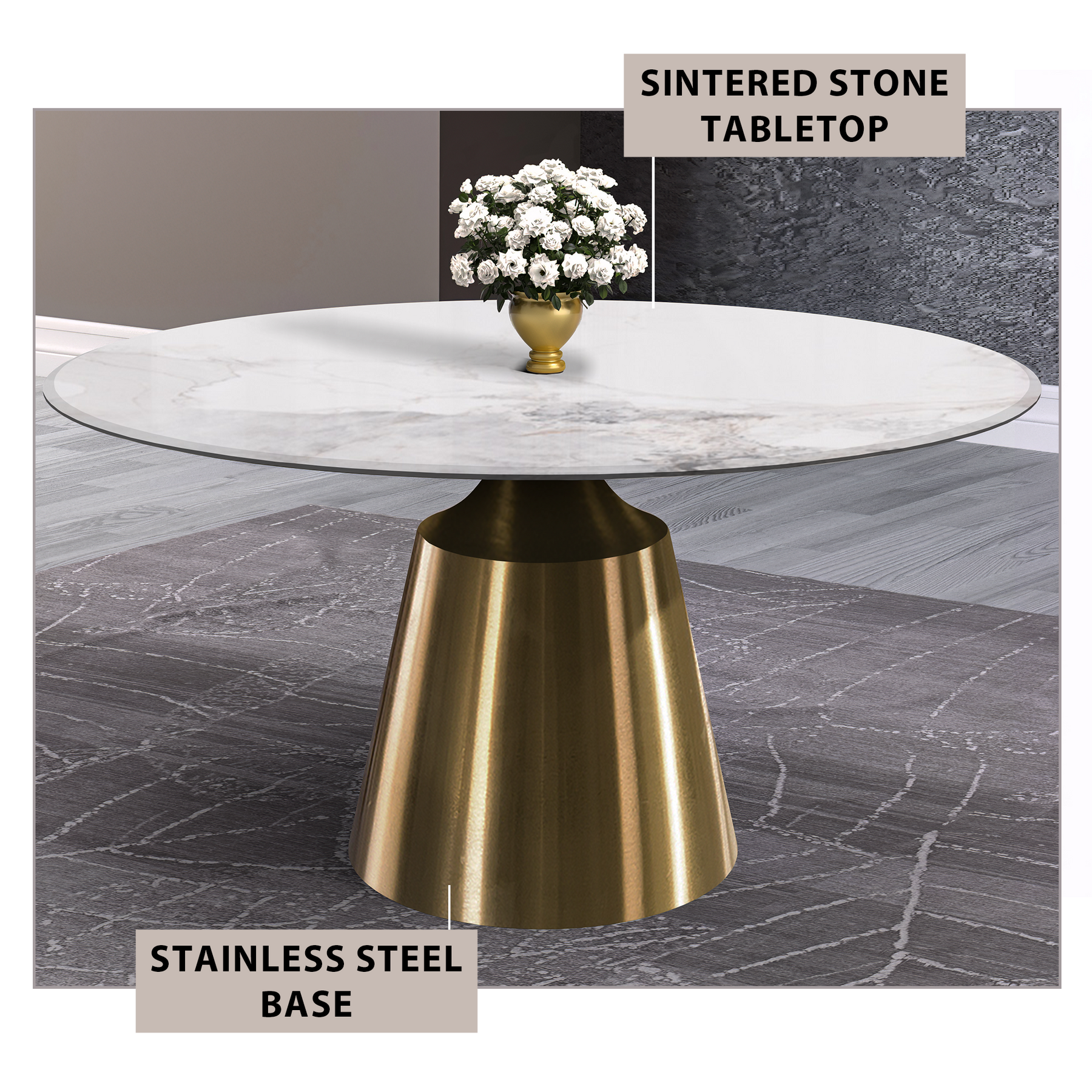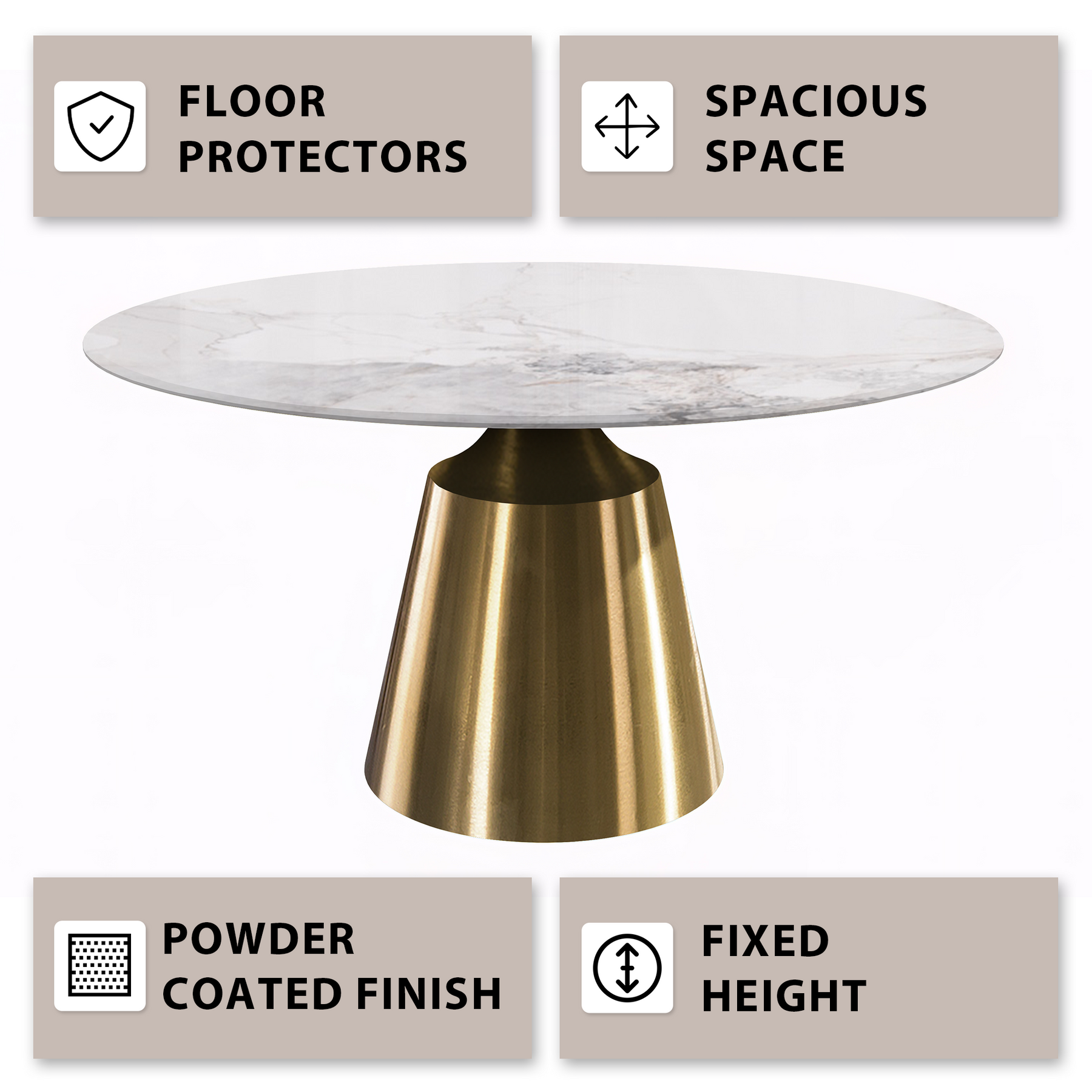 Prynn Series Round Dining Table Gold Base with 60 Round White Grey Sintered Stone Top