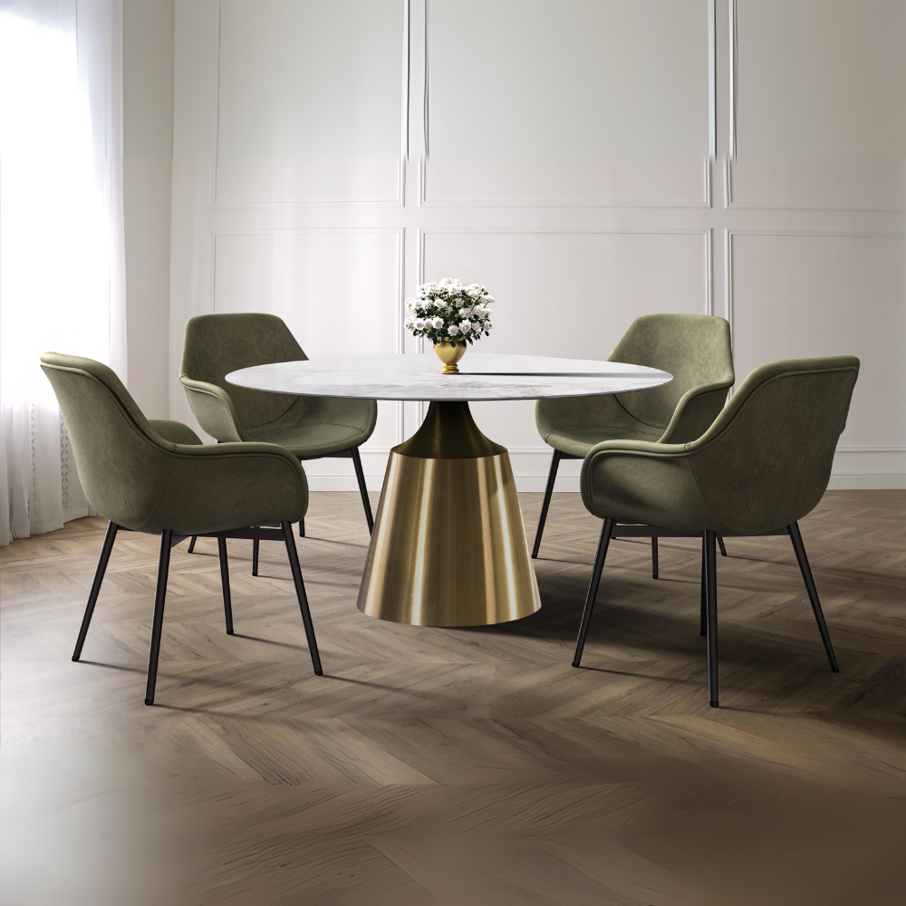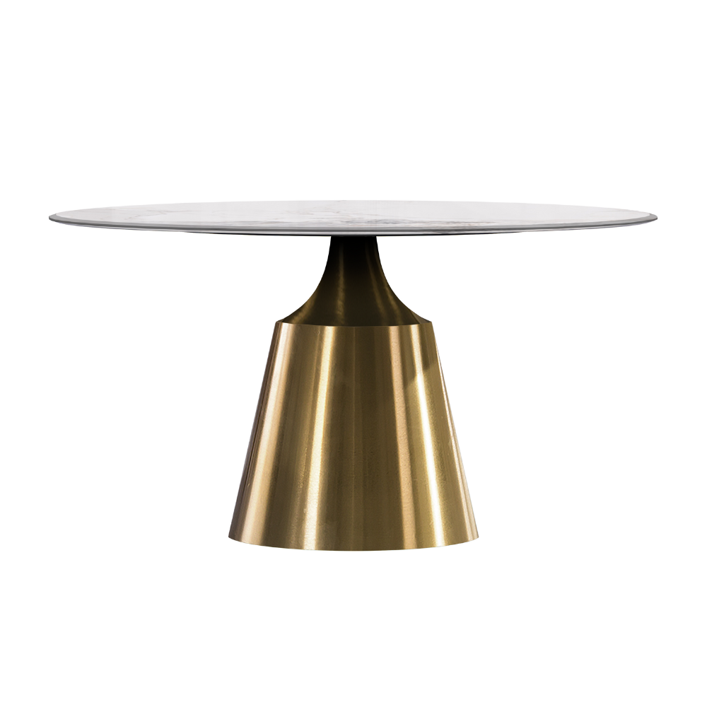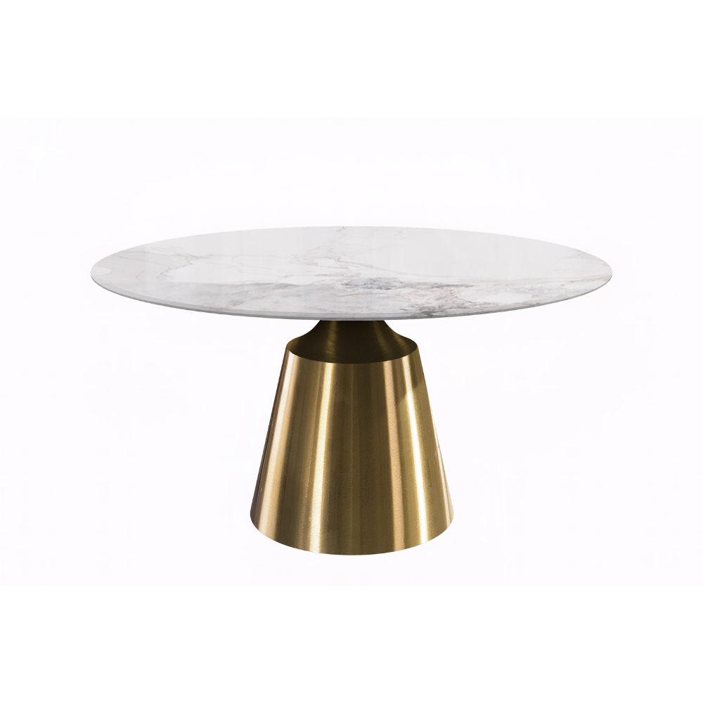 Prynn Series Round Dining Table Gold Base with 60 Round White Grey Sintered Stone Top