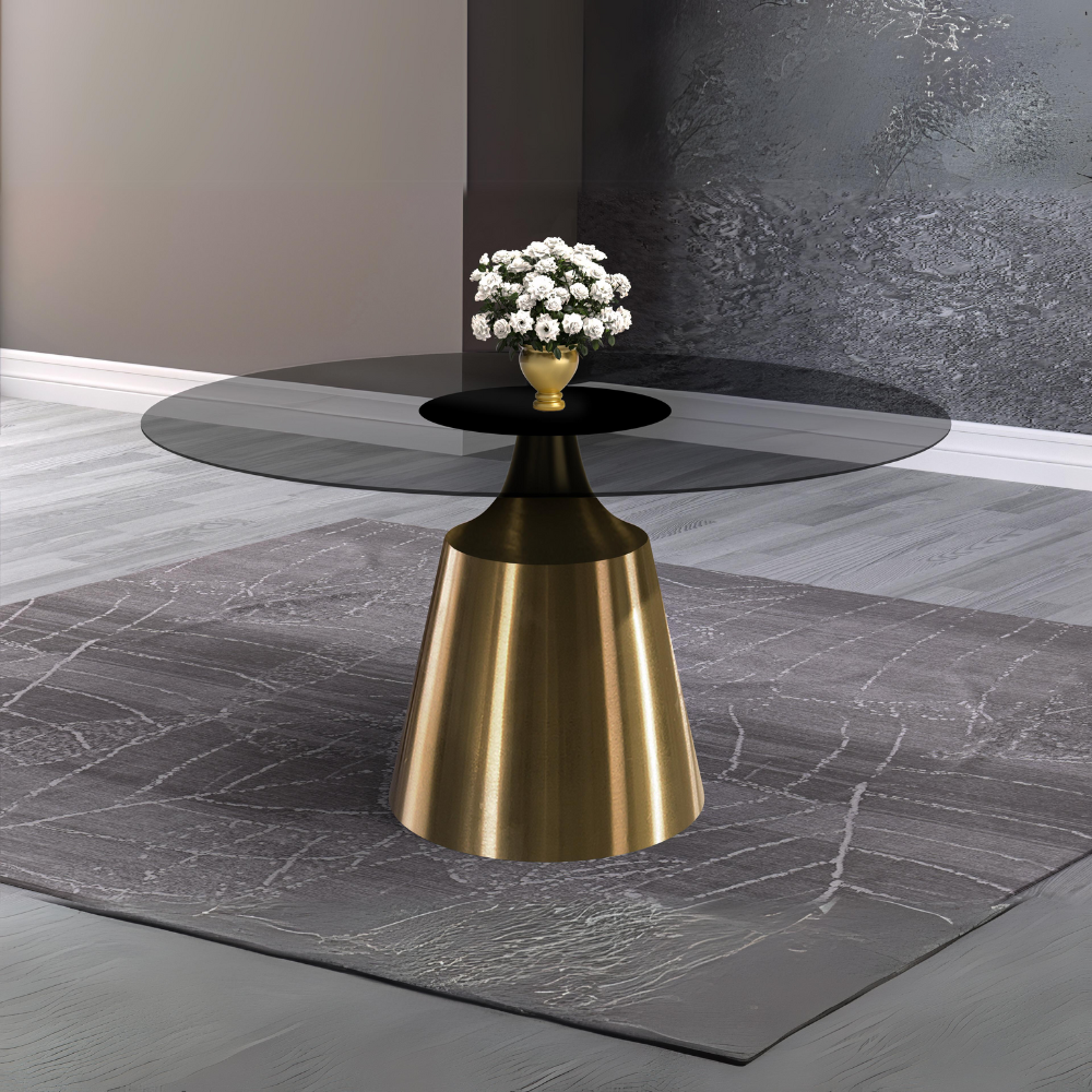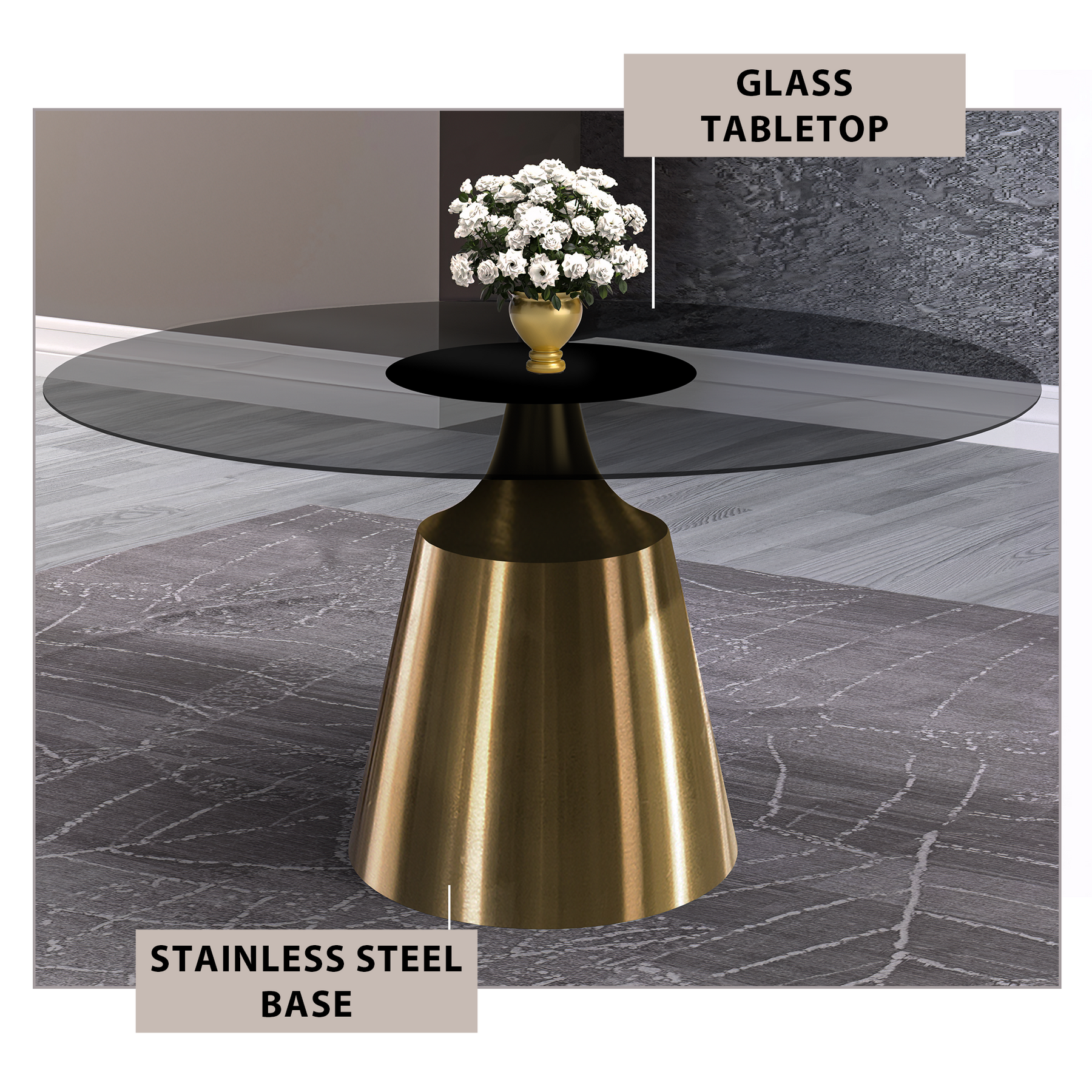 Prynn Series Round Dining Table Gold Base with 71 Round Clear Glass Top