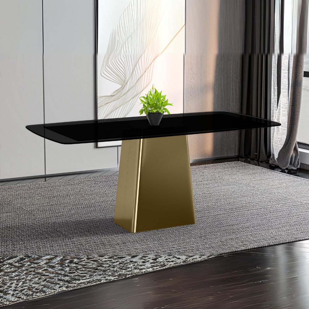 Quinix Series Dining Table, Gold Base With 55" Black Glass Top