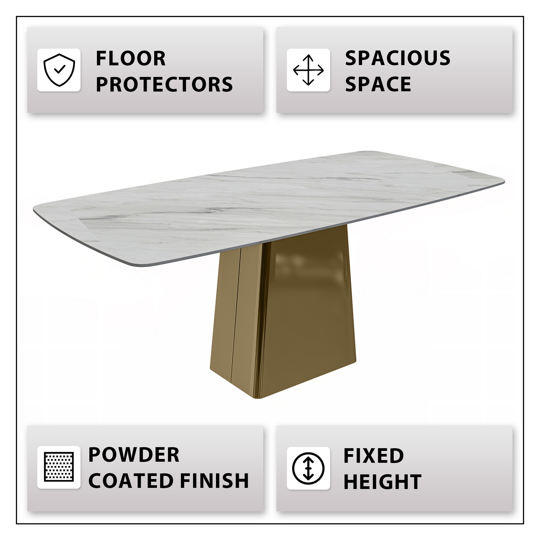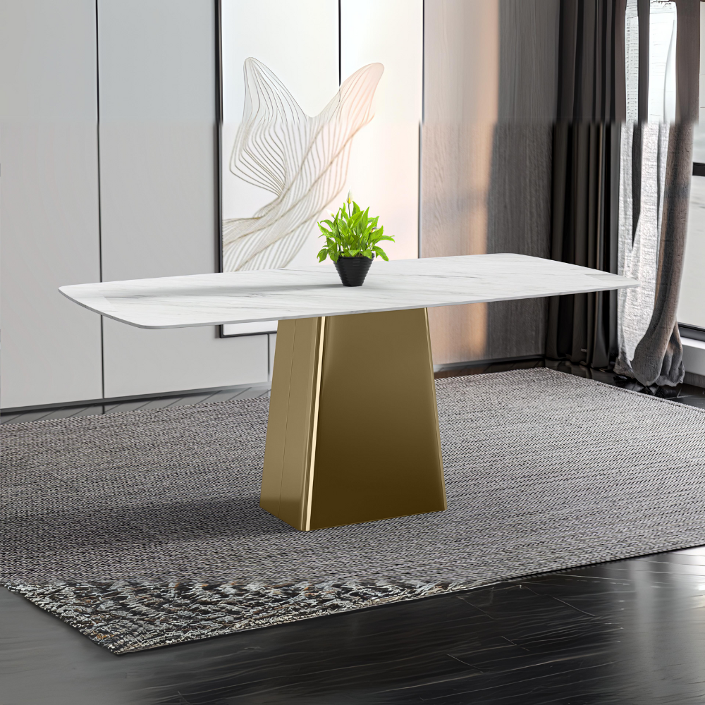 Quinix Series Dining Table, Gold Base With 55" White Sintered Stone Top